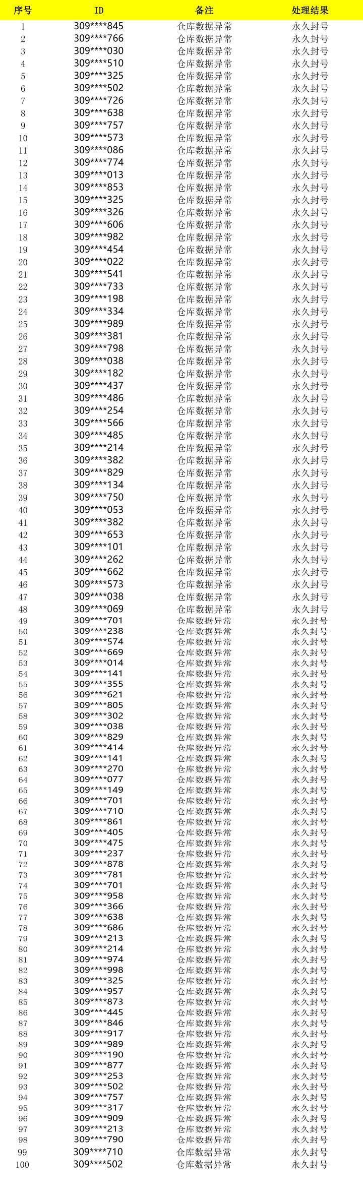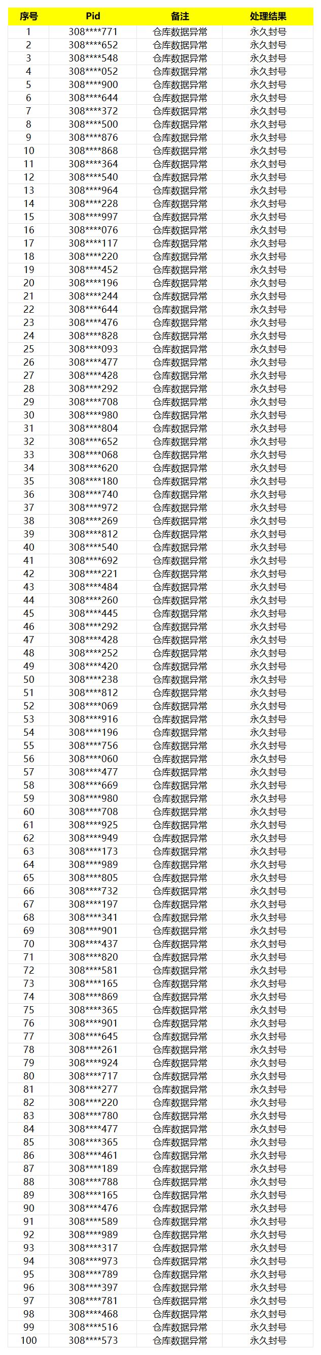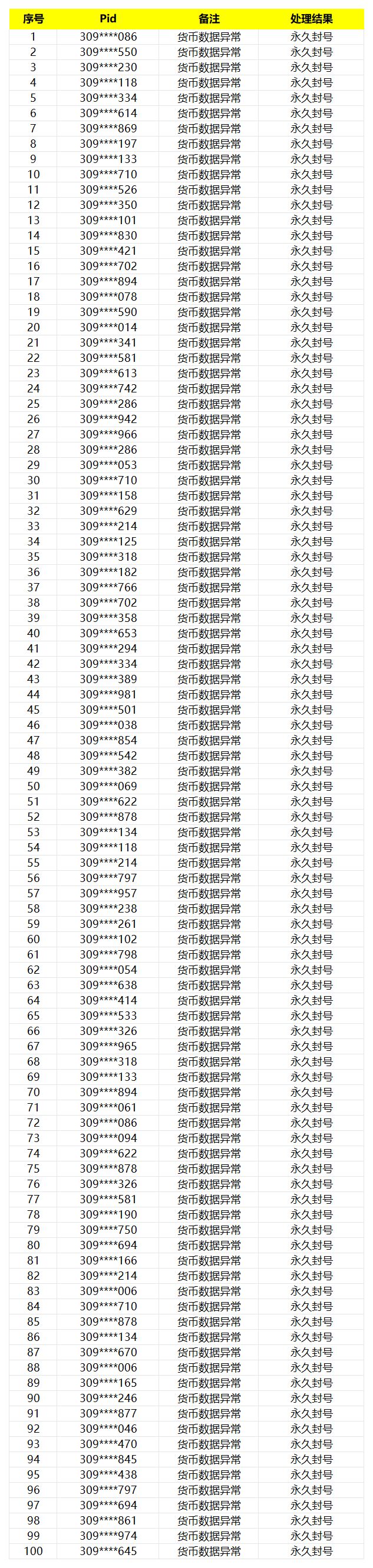 尊敬的各位市长: 为了维护游戏的公平和秩序,同时保障各位市长的利益和账号信息安全,对于《模拟城市:我是市长》全平台玩家以任何形式破坏游戏环境的相关行为,官方将予以严厉打击和处罚。 本次行动针对部分渠道账号进行核实,从严查处游戏内数据异常行为,市政工已收集了相关违规账号信息,并对这些玩家进行了永久封号处理,将于此公告中予以公示。 与此同时,我们也在持续升级防作弊功能,我们会尽最大努力为各位市长