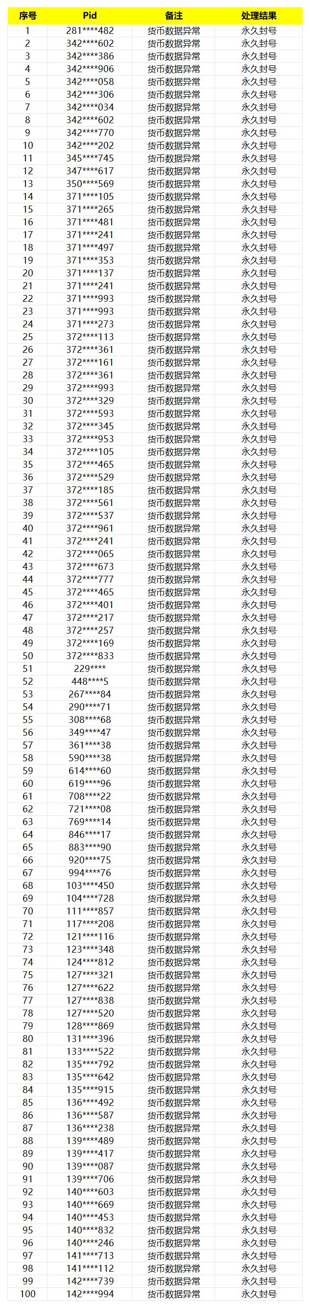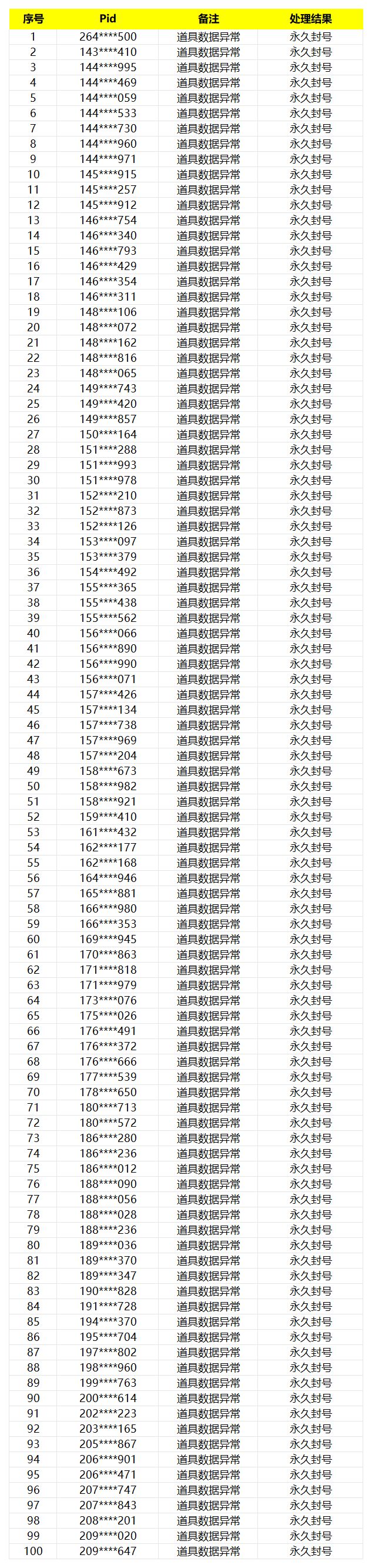 《模拟城市:我是市长》违规账号公示尊敬的各位市长: 为了维护游戏的公平和秩序,同时保障各位市长的利益和账号信息安全,对于《模拟城市:我是市长》全平台玩家以任何形式破坏游戏环境的相关行为,官方将予以严厉打击和处罚。 本次行动针对部分渠道账号进行核实,从严查处游戏内数据异常行为,市政工已收集了相关违规账号信息,并对这些玩家进行了永久封号处理,将于此公告中予以公示。 与此同时,我们也在持续升级防作