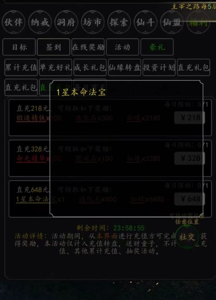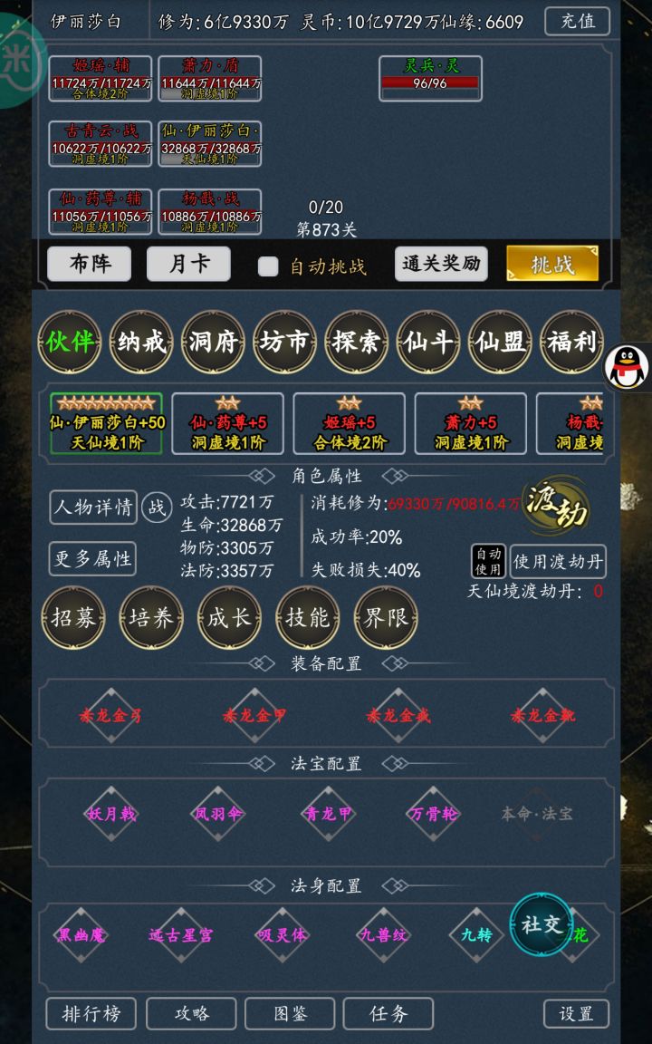 区服:665id:橙子道友们在修仙的路上一定有过被和自己相同氪度甚至氪度比自己低的人按在地上摩擦的经历。除了发育速度不同导致的资源获取不对等,资源的分配是否合理同样影响着战力的强弱,合理的资源运用可以让你实力爆涨。1、仙缘篇平日必买的有:日常中进阶丹+升星丹的次数(每日买满),神兽山中的挑战+炼化次数(每日买满),道侣中的修炼+游历次数(前期每日买满,道侣进阶到瓶颈且没有氪升品丹计划时可考