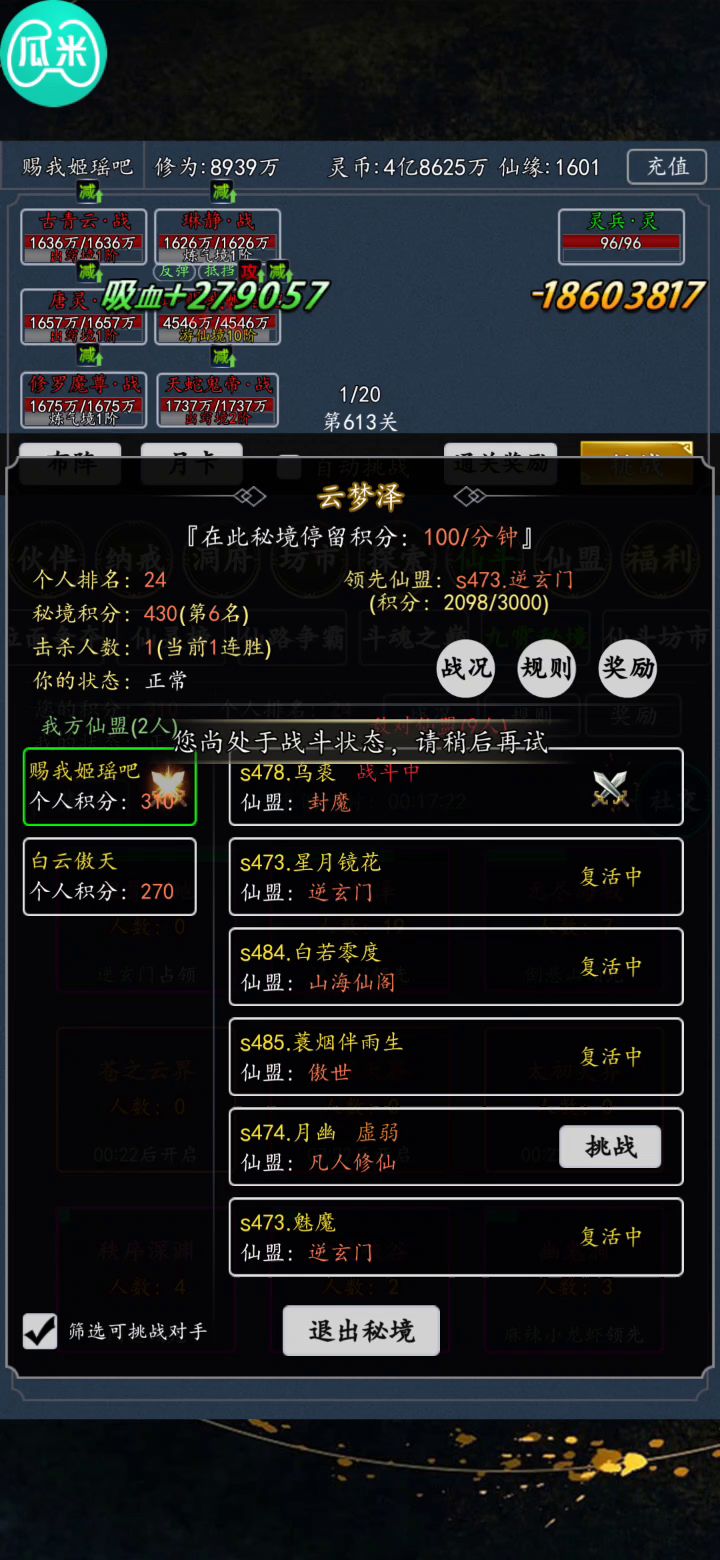 bug,我明明没有挑战,显示我挑战中,也打不了