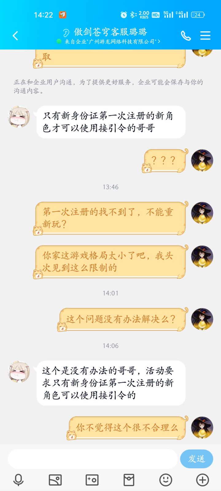 游戏有没有真的像别人五星评价的那么好我不知道,我先说我遇到的问题,之前的号给删了,重新安装之后又自动注册了一个,然后是很正常的实名认证,然后问题来了,新注册的号进游戏之后无法填写其他玩家的接引密令,客服反馈 美其名曰:活动要求只有新身份证第一次注册的新角色可以使用接引令。