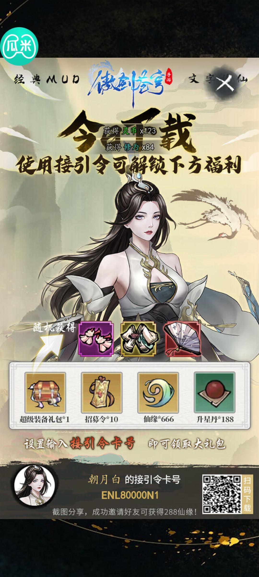 输入接引密令,拿奖励,大家冲鸭~ 接引码:ENL80001BA