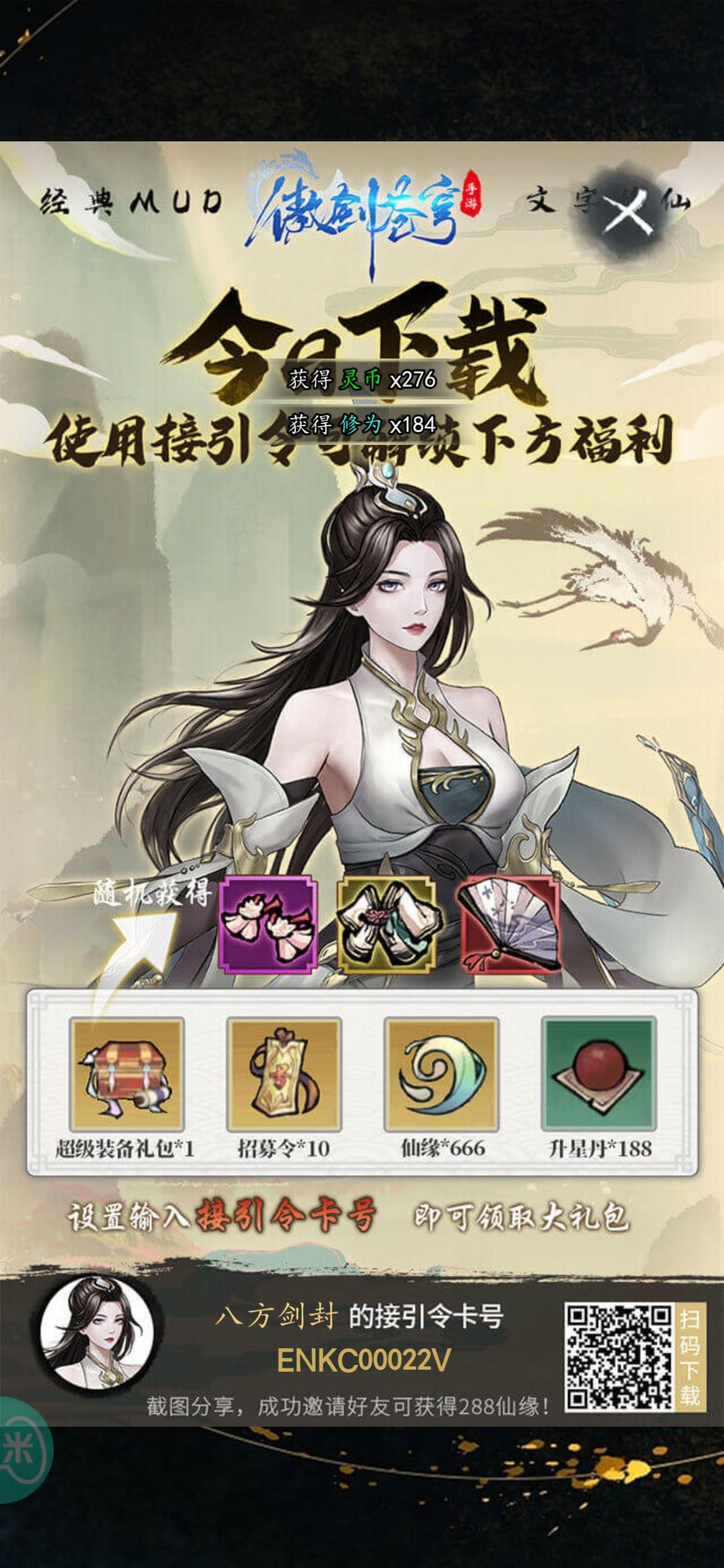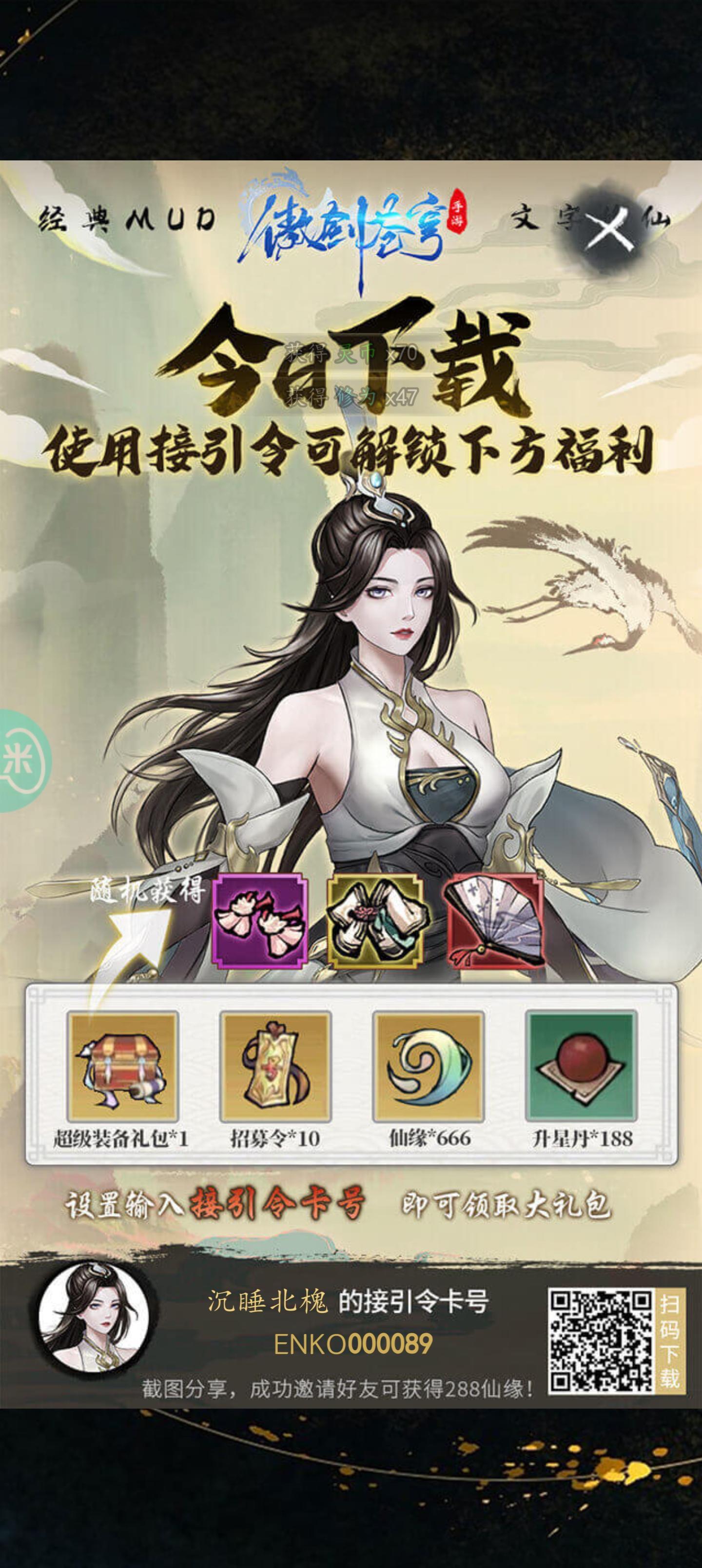 新玩家福利输入密令ENK40001MN领10连抽,666仙缘