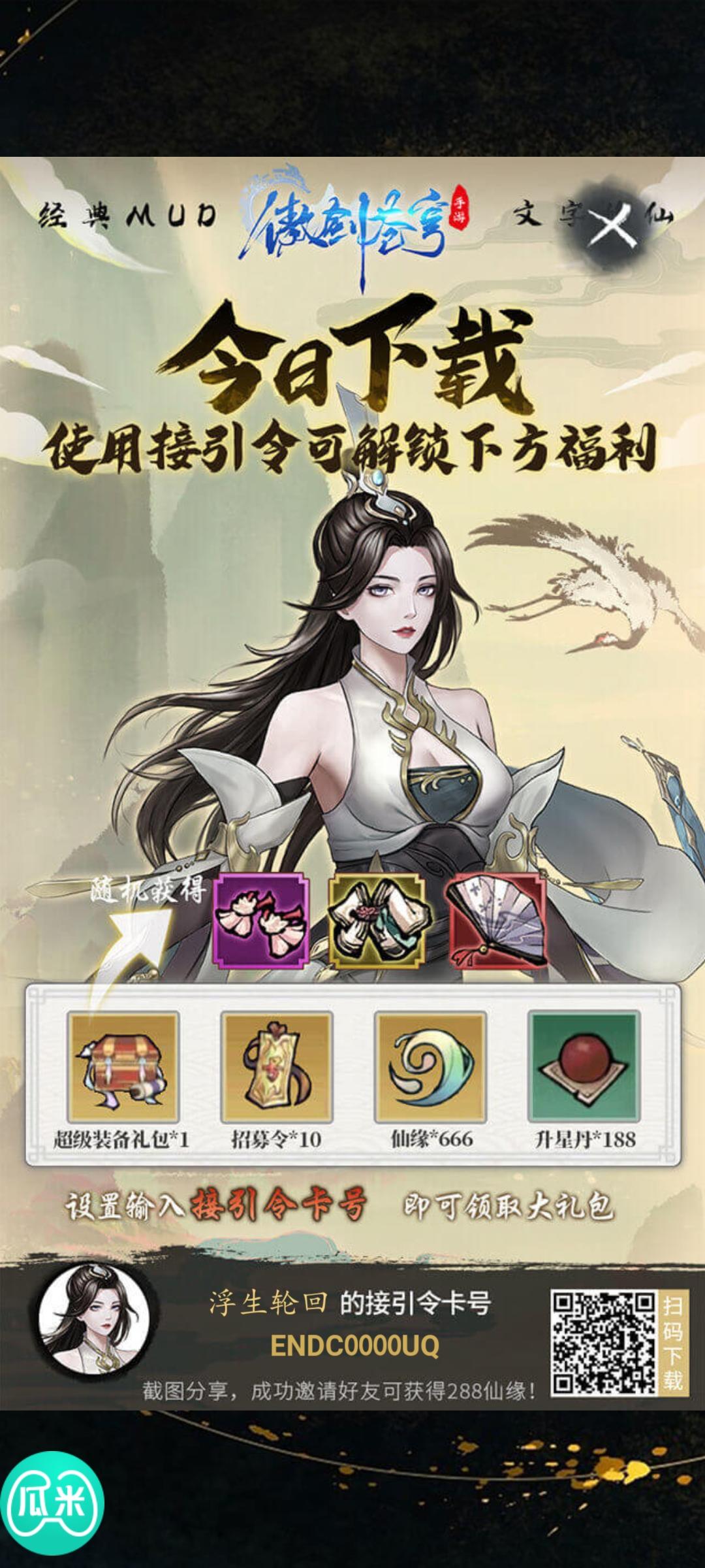 今日下载输入接引令:ENJS000091领免费十连抽,还有机会获得妖龙扇子