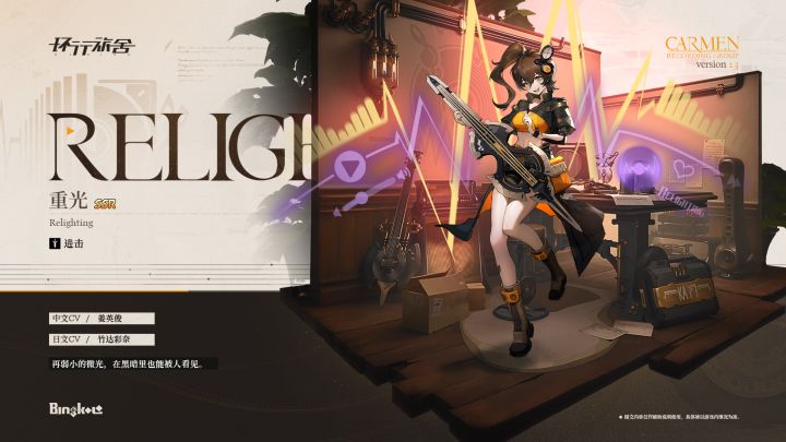 【舍友档案】◆重光|Relighting◆熵因序从一只小小的萤火虫开始,再到照亮世界的太阳……一个人的力量究竟能达到怎样的程度呢?「不,一个人是永远无法成为太阳的,但是几千只萤火虫聚在一起,也足够照亮眼前的路了。」海莉——代号重光——是卡门录音最特别的一位成员。作为一名工程师,重光离开管理层的职位,住在普通的员工宿舍里,与一线的工人们一起工作,共同维护怀贝涅拉哨站的平稳运行。另一方面