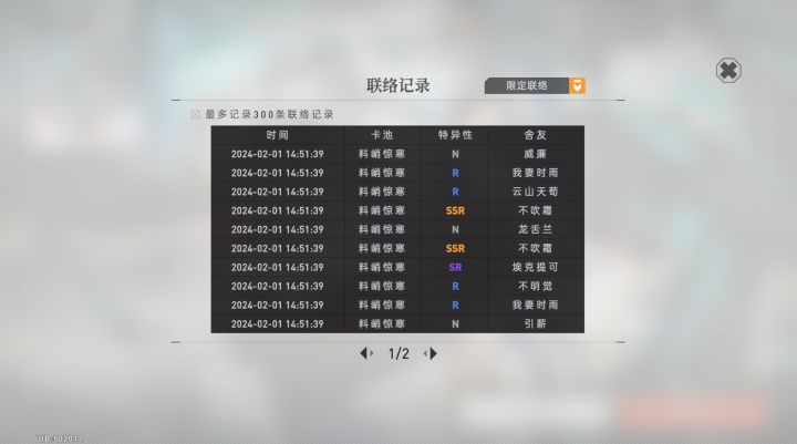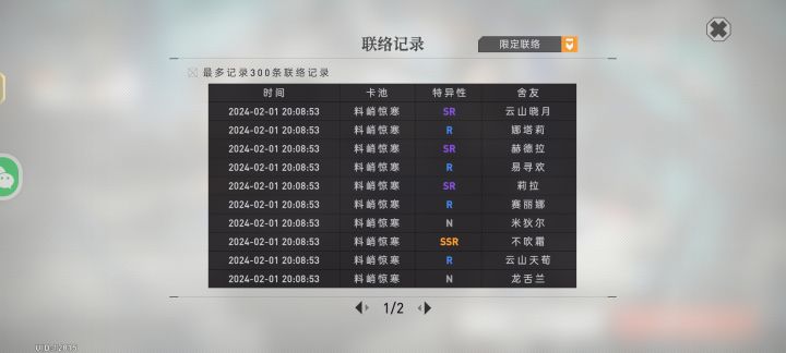 虽然说之虽然说之前的池子我都没怎么抽,攒了将近100抽左右,但那是因为你的池子里的角色我都有了呀,不要搞我呀,我花了120抽才把两个限定抽到手,虽然说不吹霜很欧十连就出了,但这个不知椿为什么我花了110抽才抽到呢?歪了克莱缇卡或者阿将军我都能接受,为什么你又给我歪了个柔荑呢?顺带提一嘴顺带提一嘴,说实话,之前的剧情演绎更有味道一点,但我不排斥你这种方式,前提是你剧情做的不错,我继续观望别搞我啊