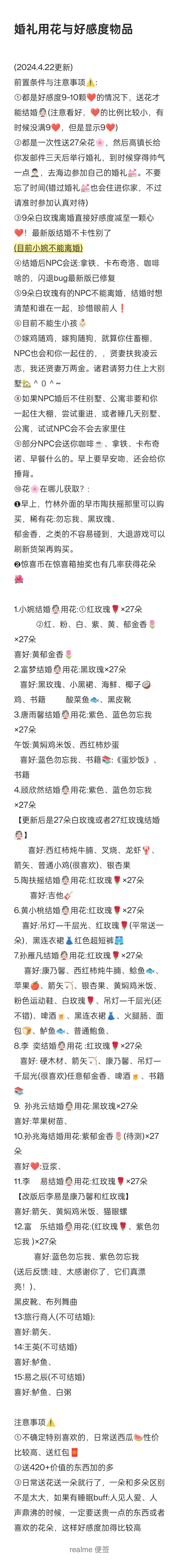 结婚婚礼用花和部分NPC好感度物品