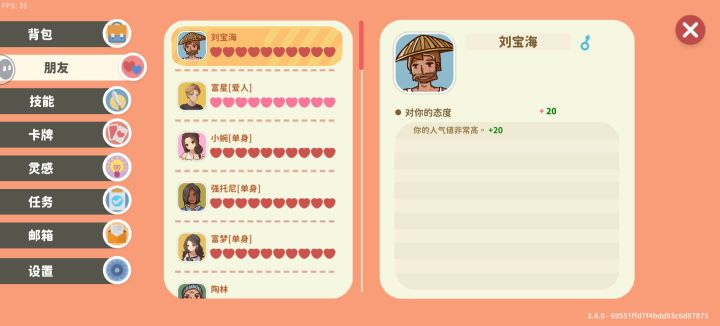 今天发现,刘宝海(我送了99棵草好感度这就满了)、刘老农、陶林、陶扶摇送草就能长好感(不知道一个一个的送可不可以,我还没试过,我一般是一次性送99个的)#小生活悠闲小镇物语小镇 #小生活悠闲小镇物语小镇物语
