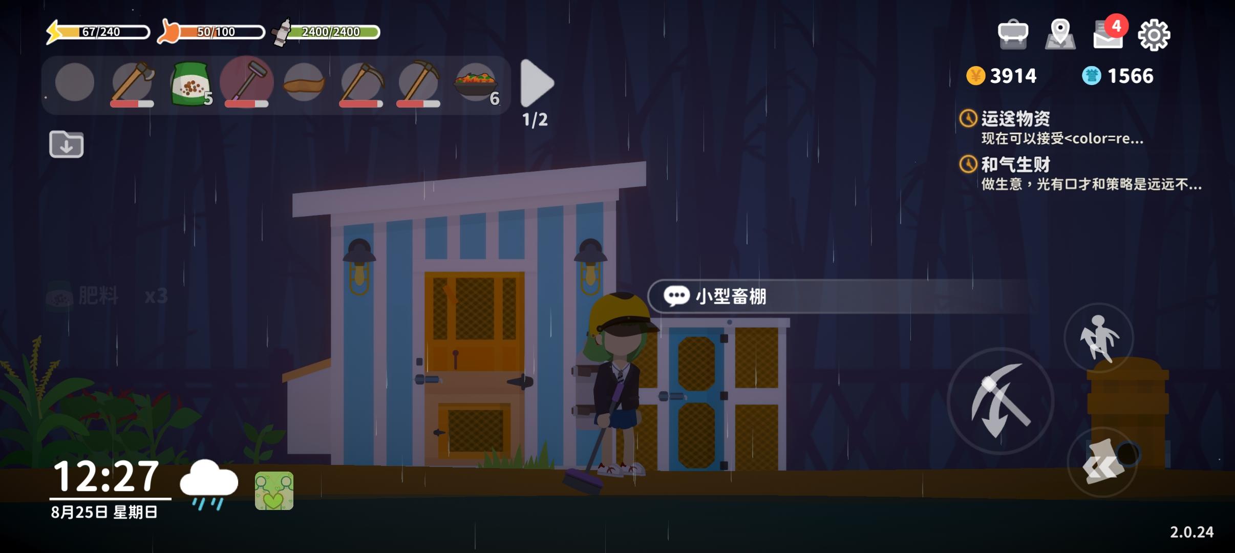 养殖动物真的好麻烦,饲料每次只能制作一个而且很费时间,扫动物粪总是不顺利,鸡叫真的好吵啊,在牲棚呆一会感觉要幻听了,捡农作物也是只能一个一个点的要得腱鞘炎了,游戏很好是我喜欢的自由度,希望尽快更新,改掉不合理的bug.早点上完全版手游,钱钱已经准备好了