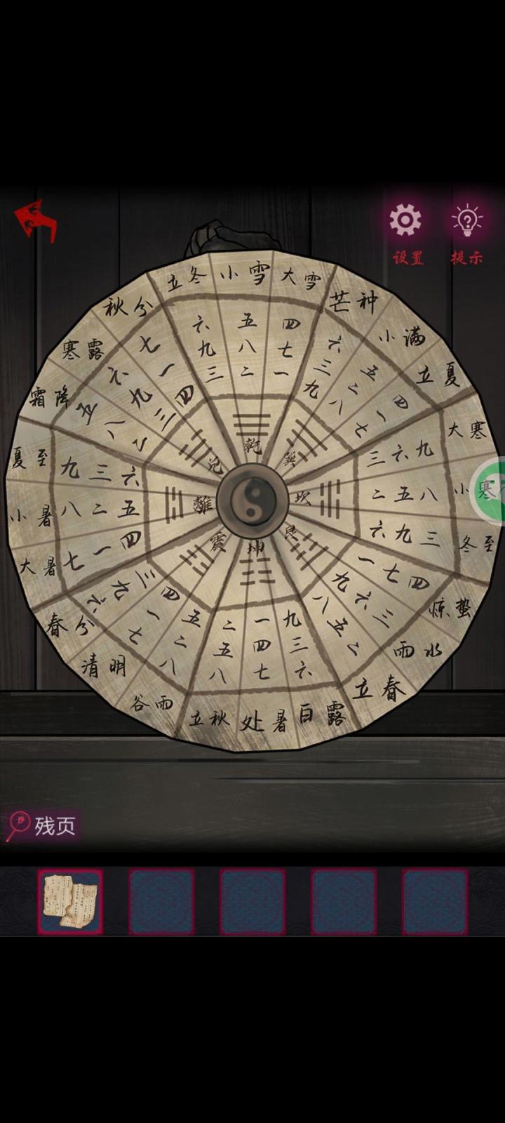 根据纸条上的内容可以知道单数白色是阳双数黑色是阴 ,单数多也是阳,双数多就是阴 ,注意!!纸条上面还有几个节气,也有用!图一那个伞上面每个卦象都有一个对应着纸条上的节气 ,节气又对应着三个数字 ,有单有双 ,就对应奇多则阳盛,偶多则阴盛,就是看这三个数字单数和双数哪个多就是哪个 ,阴阳就可以分出来了 ,白阳黑阴 ,也可以分出来黑白了 ,点击对应颜色就可以了