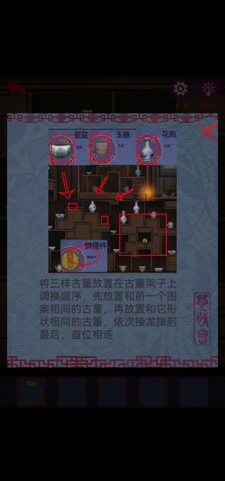 这个地方摆对了,还让我找找线索再来。。。那个香早就点燃了啊,卡在这,重启也不行😓不知道咋办了