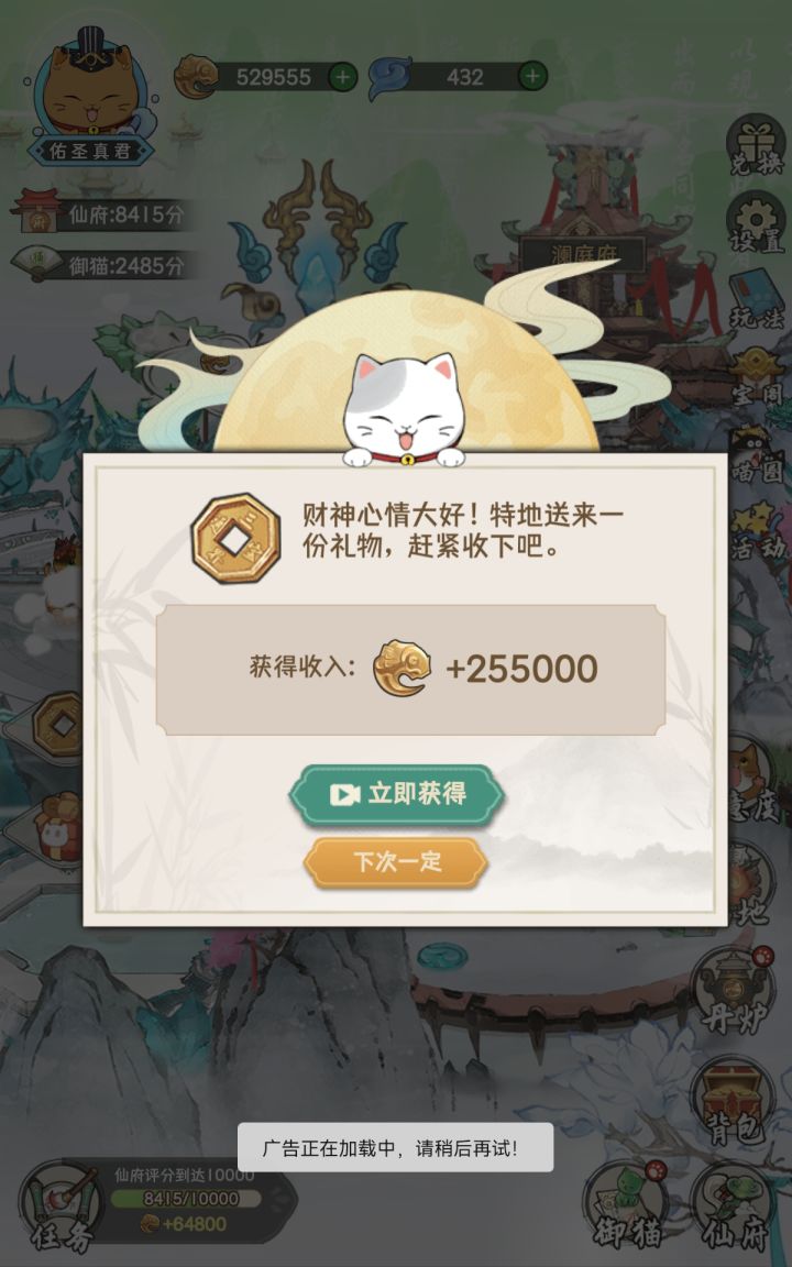 1.新出的小游戏太刺激了简直不是人玩的,我刚为了躲石头挪到旁边,就被石头突脸了,没看到,根本反应不过来啊!你要么缩短游戏时间要么加长旁边两侧的宽度让我能看到石头,不然真的会高血压。2.宝阁买的碎片,猫猫升满星了多余的碎片就没了吗?哪怕折价换成仙元呢?3.双倍成长和收益翻倍的广告没啥用出的最多,倒是多整点自动点好感度和自动收材料的广告啊,玩一局新出的小游戏回来一看我的好感度好几个没来得及点,心碎