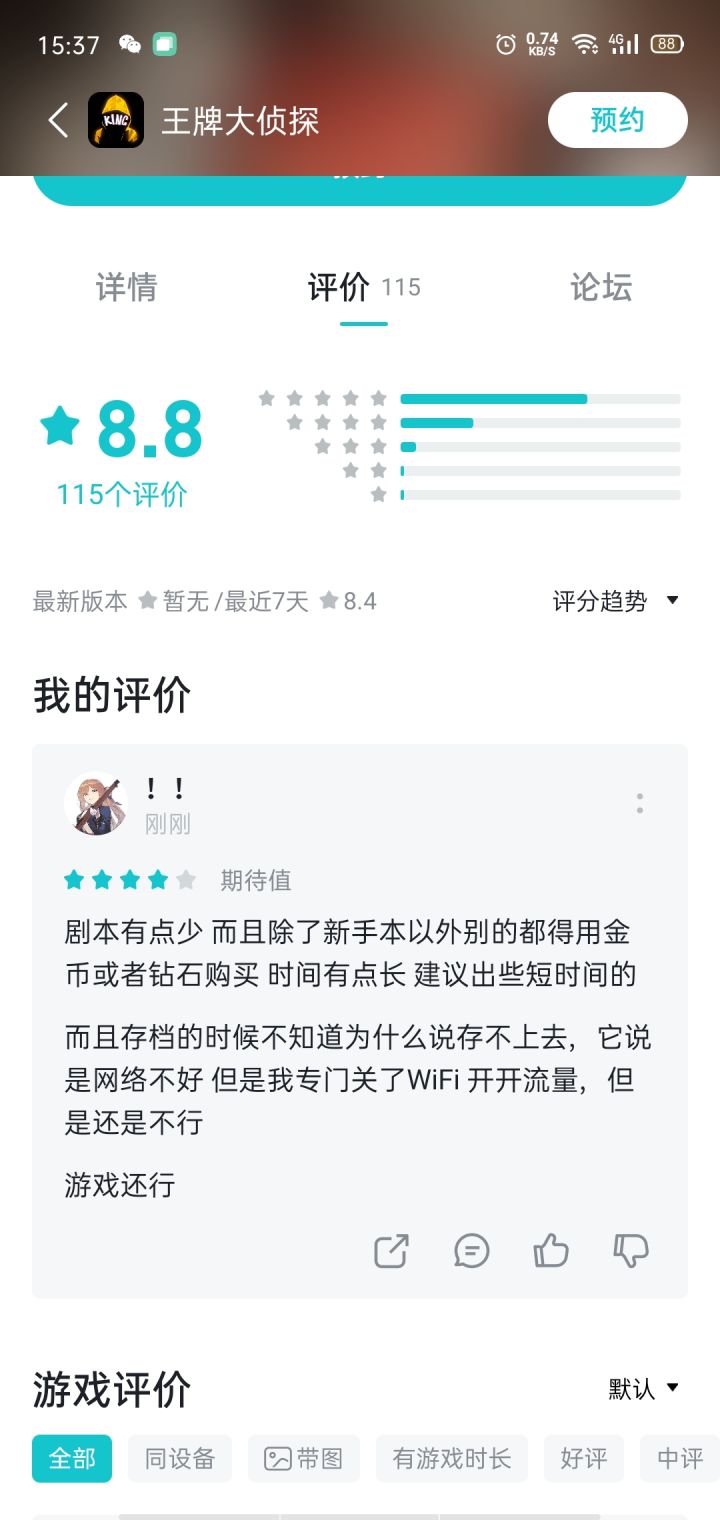 嗯很不错的一个剧本杀的软件体验方式什么的都挺新颖的然后呢今天呢在里面体验了三个剧本杀吧,嗯第一个都还是新手关卡然后第二个的话是和朋友连麦的得一个双人的剧本杀三个的话我是完了那个新出的那个六人本《岁月》感触的话还蛮深的吧我唯一觉得需要改进的就是岁月他出生六人吗你肯定大家都是需要进行剧情演绎需要讲话的但是老会有人跳车然后因为人跳车了然后就导致得重开重开以后呢你第二次进去我发现就算你全玩到位了他该给的经验是不会给你的,只显示你玩过这个本并且说是有二刷这个东西显示,然后玩到岁月最后的时候呢大家会统一的进行回忆了解结局然后在播放视频的时候会出现卡顿导致没有声音的现象出现希望能进行修复一下,然后如果说你中途不小心退出去的话在那个游戏结尾他那个视频会重复反复观看直到您看完不管你前面看到哪里这个也希望能修复一下然后呢具体的体验感的话算是还不错啦就是跟人连麦聊天的时候会经常出现台人语音过小或语音卡顿的现象看看有什么办法能够弄一下吗最后呢希望越来越好然后本子越来越多维持住现在的劲头继续发展。 然后希望跳车的事情的话能够改进一下尽量减少这样的事情发生或者说是到后期可以给那些被跳车的玩家一些补偿或者是什么都行