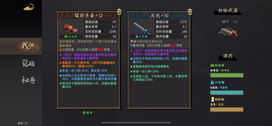 最后的时候在行脚商买了个给1~3个卷轴,结果就成这样了。本来拿普通打算测一下一脚超人,结果最后来了一波这个,而且一次给的卷轴还不能扔。😂 本次的核心无光之盾3次免伤,和极光之蛊的暴击出电球火球,再加上双子,可以直接打出3元素,再加上最后一波不知道怎么回事,不知道是不是把boss攒能时,默认成不是敌人,加上武器有回收子弹直接把boss秒了。