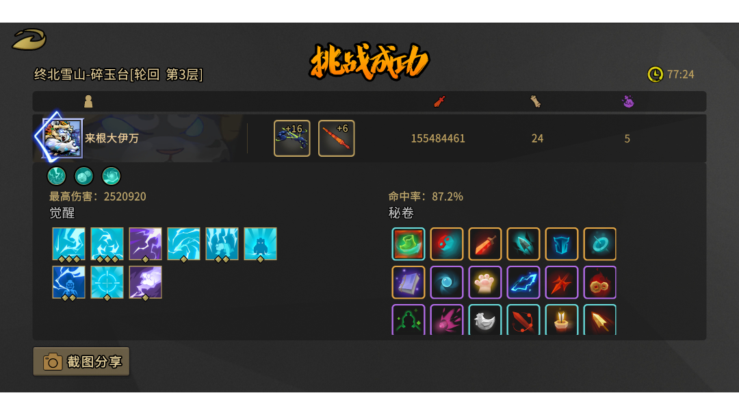 野排队友,第一幕没有任何沟通,赌了一波千难,第二幕直接融会贯通然后沟通队友给了个宝典,融会23层直接起飞,伤害爆炸😁😁😁,唯一遗憾就是觉醒有点不行。