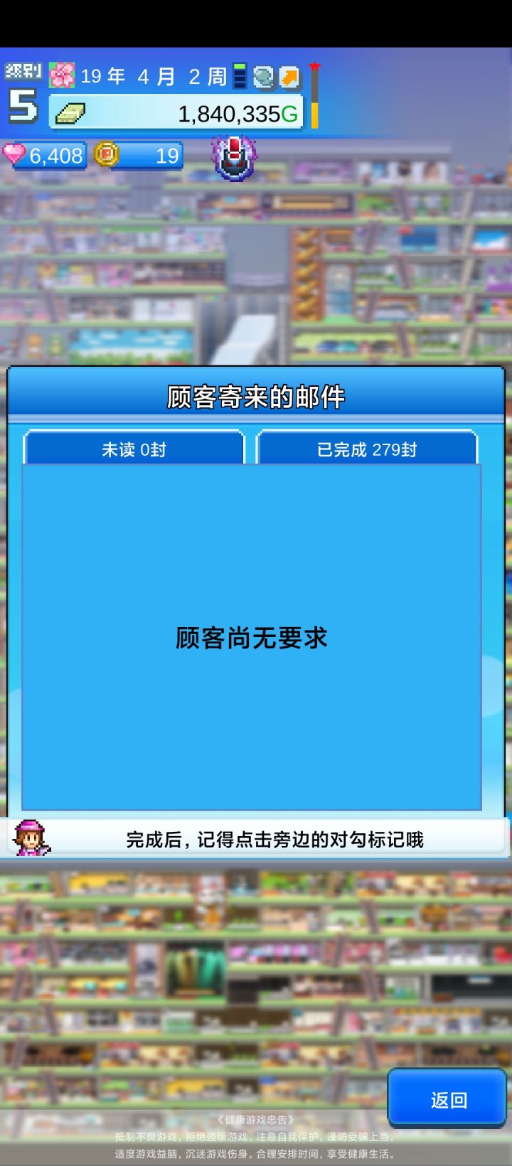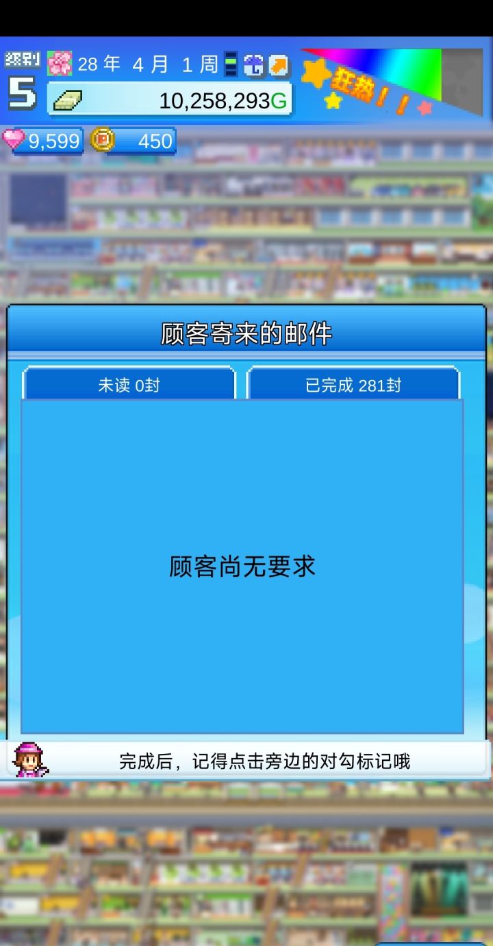 最后收集点数完成邮件任务时,等的时间有点久 前面大改店铺布置的时候我看手机看得眼要瞎了