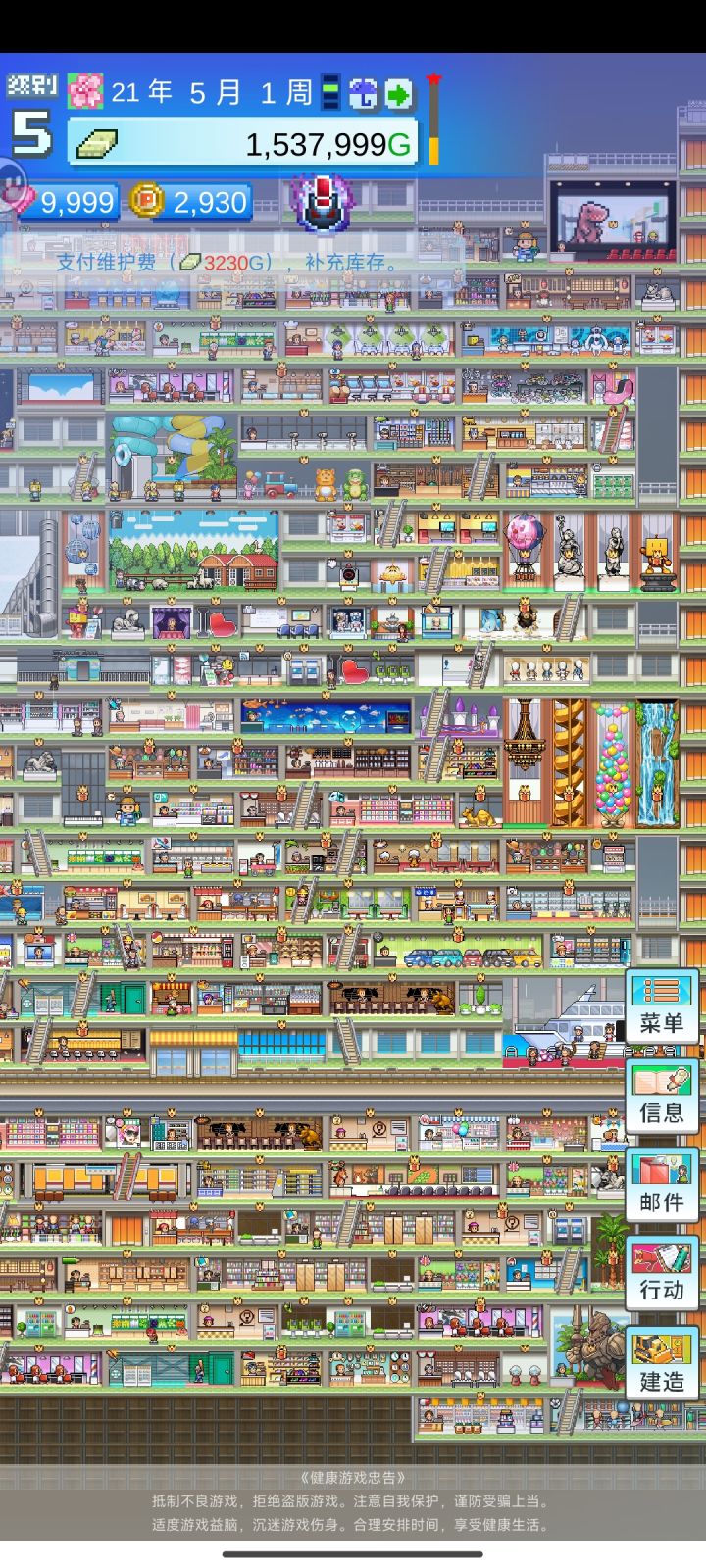 我觉得挺好玩的!没广告也不用充钱就单纯肝!我在论坛里找了个平面图,我就按着上面的来安铺面,两天肝完了。 我现在就差升升级,升满就OK了!🙊