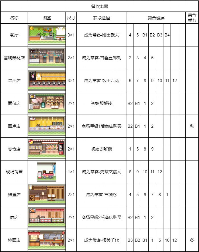 【餐饮电器建筑图鉴】获取途径、契合楼层、契合季节一览