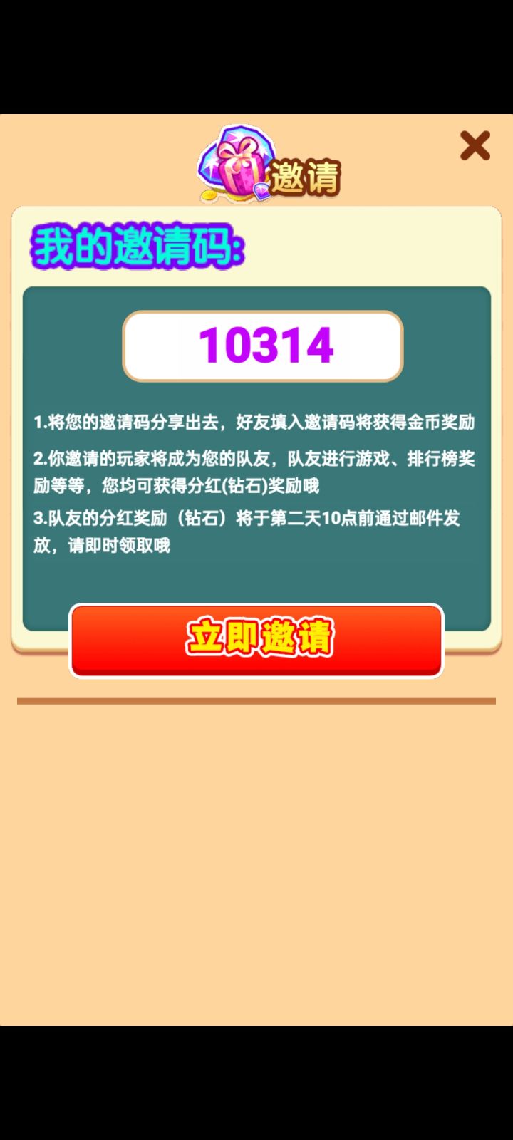 填写邀请码10104,5000金币带回来填写礼包码开服有礼,8888金币送给你助力你开局5天赋,合理搭配不错过单人模式冲起来,排行榜上就有你另外附赠一个神级天赋对照表,欢迎更位玩家加入PS:一定要填邀请码呀,幸运满满啦,后续也会继续上新攻略的