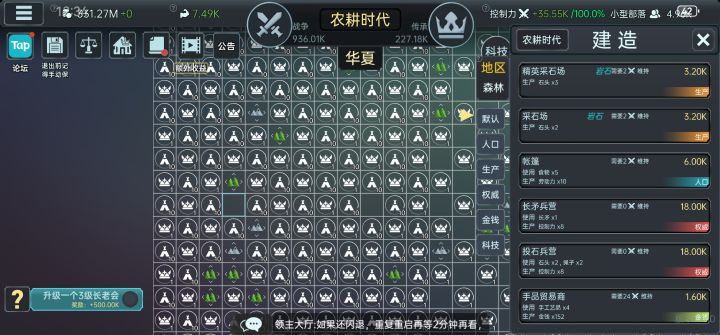 对手机玩家的视力太不友好了。一定要在平板上玩,否则第2天起床会眼前模糊,一宿可涨100度1个BUG:升到石器时代后找不到青铜矿。本来应该所有石头都能采青铜矿和铁矿,但在我这,农耕时代开采的石头可以在之后卖掉石矿,再买青铜矿或铁矿。农耕时代未开采的石头,在铁器时代无法识别,但在青铜时代可以养马(真是谜一样的bug…另:无法使用对话框,无法保存命名,不确定这是bug吗?4条建议:1-调整领