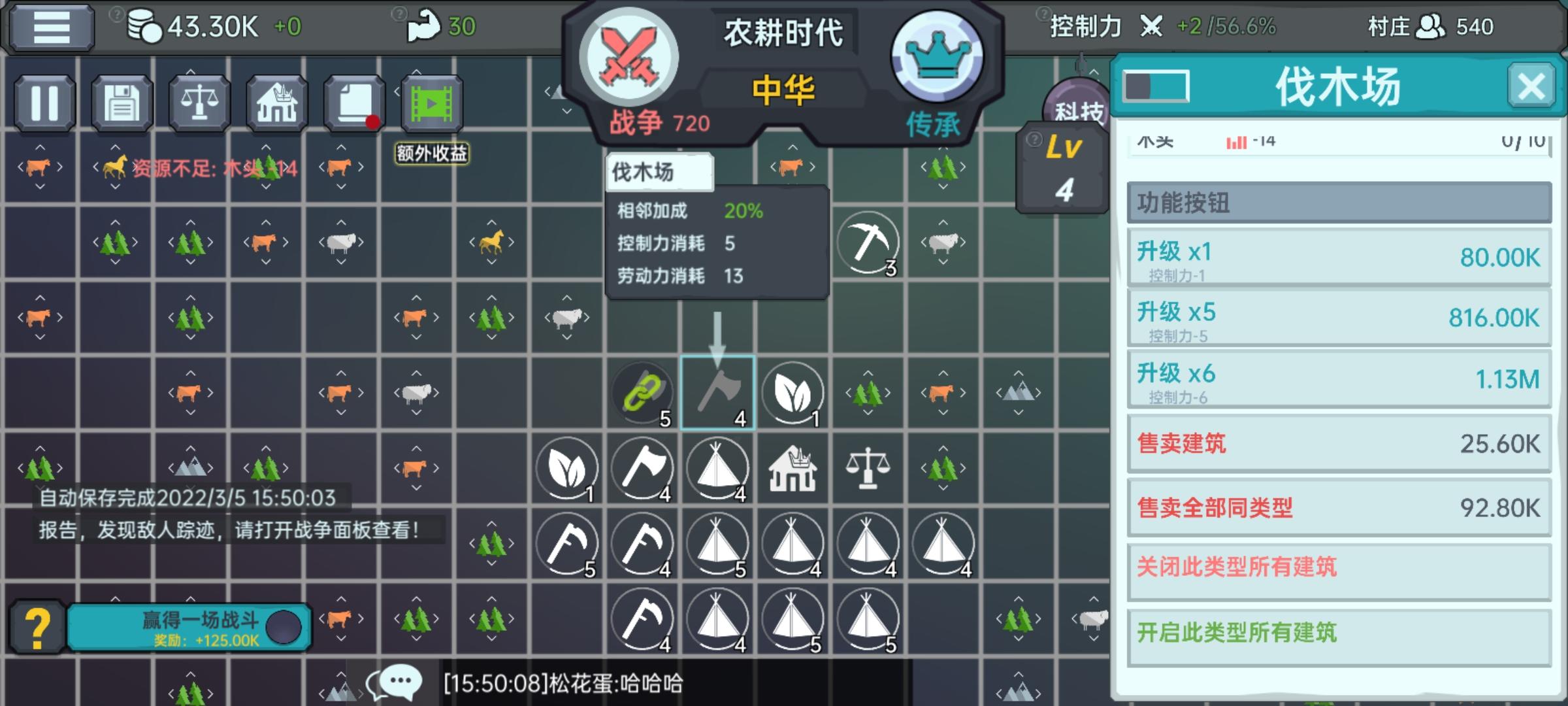 在食物显示结余100多的情况下,打开一个显示劳动力需求为13的伐木场,整个人口掉了50多???其他也有类似,动不动一个小建筑物升级,本来全绿的数据,瞬间崩盘,完全救不回来