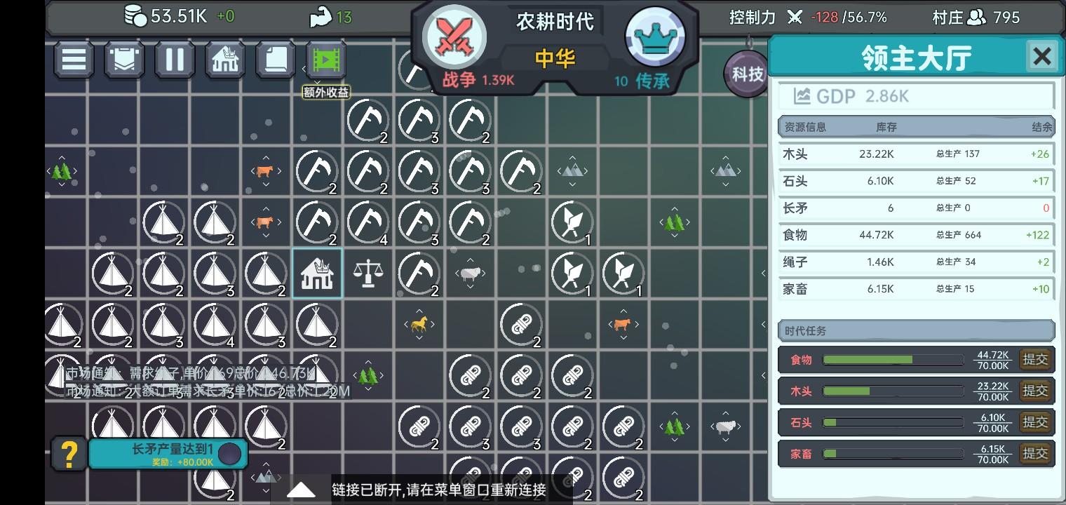 一直不产长矛,升了二级,材料够,控制力够,军营也没打开