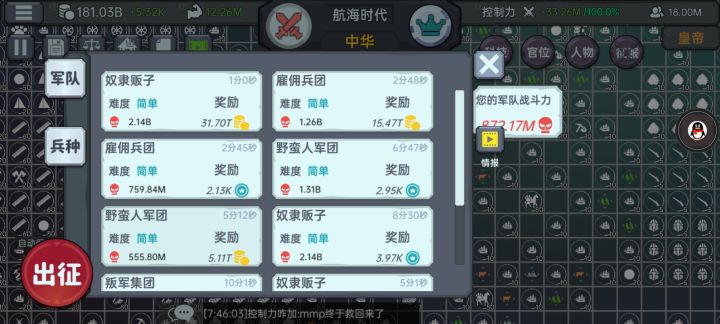 养千万不要养大船,大船是真的废,4b还有可能打不过2.14b 也就控制力给的多,一个兵营养全图,甚至控制力溢出 大船除了血多点打架根本不够看对比下来还不如养来福,精矛这些,更何况大船的造价还贵的离谱,人已经麻了,现在打架有时能把血压打上来,压着一倍战力打被人打没大半