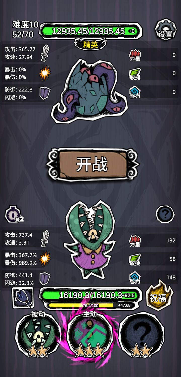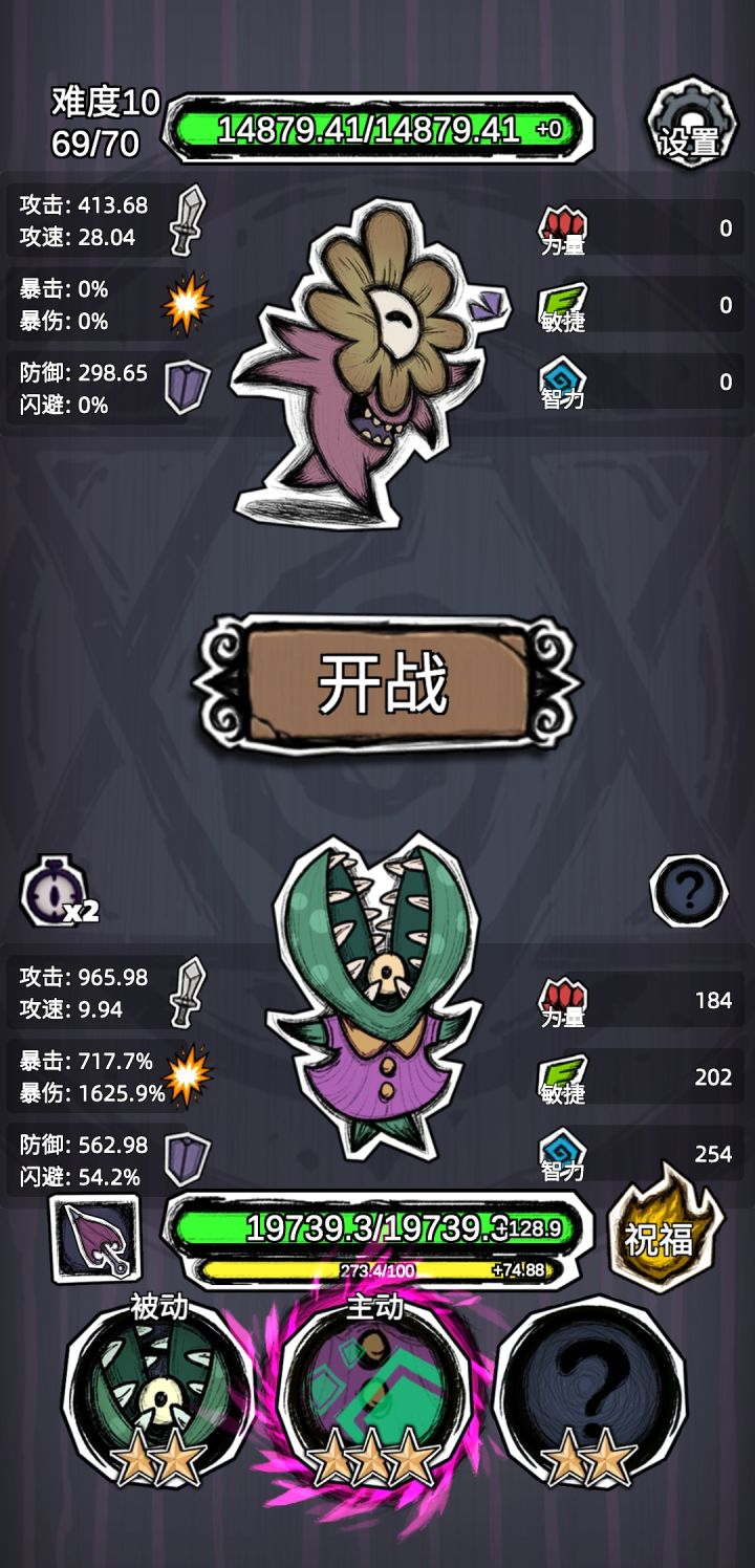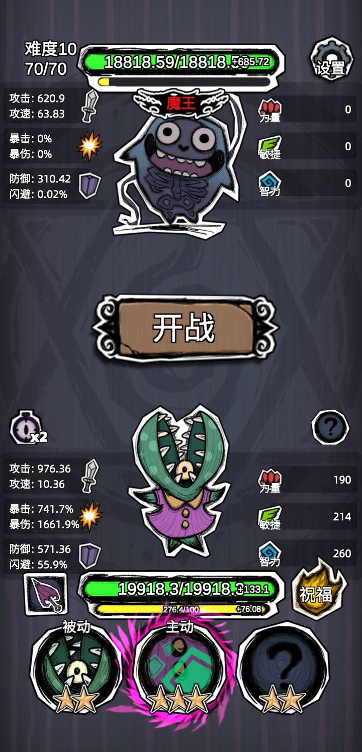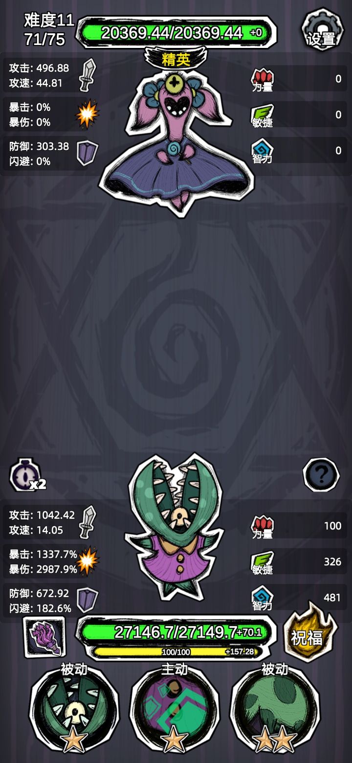 植物人点上很多祝福,开局拿到牢不可破,中期拿每秒加属性的,随便拿,后期随意。稳稳通关。
