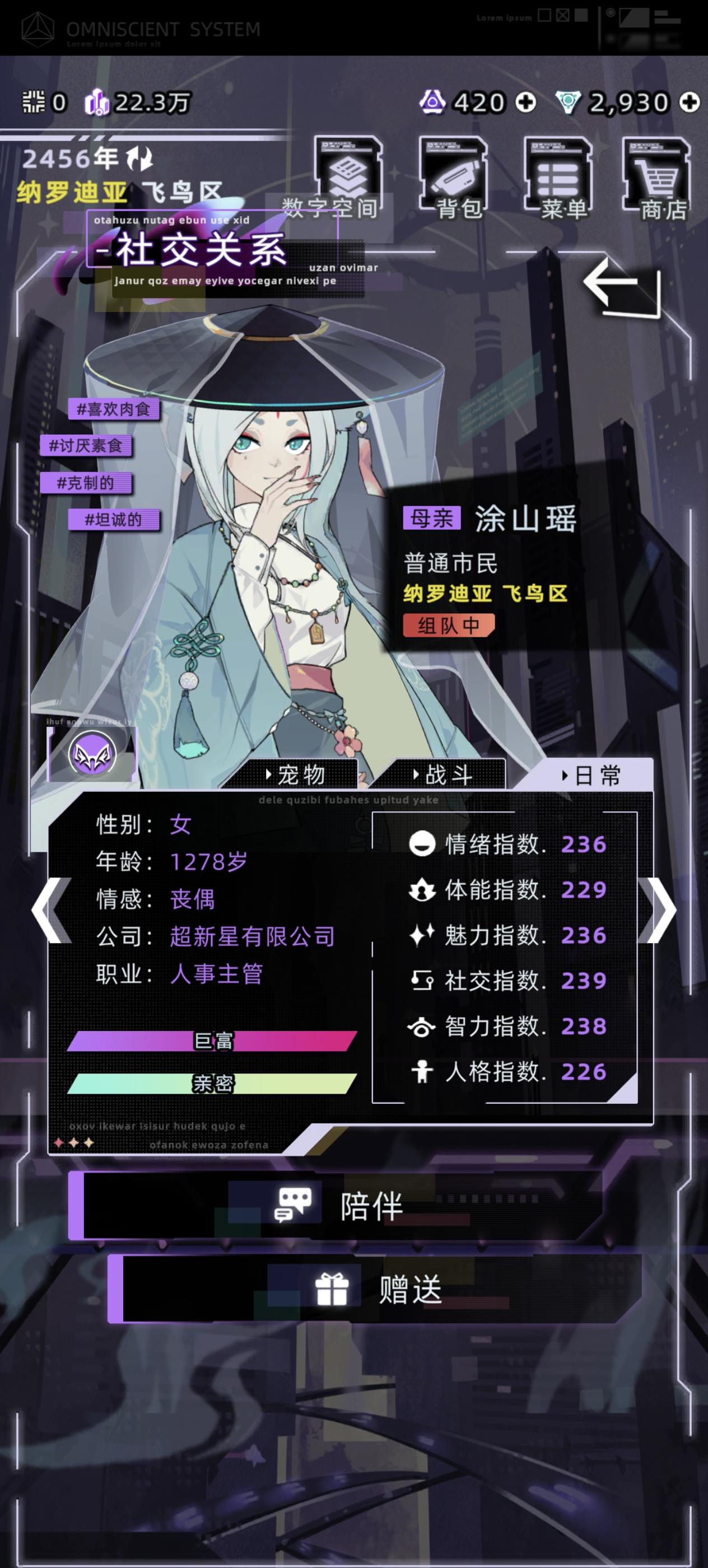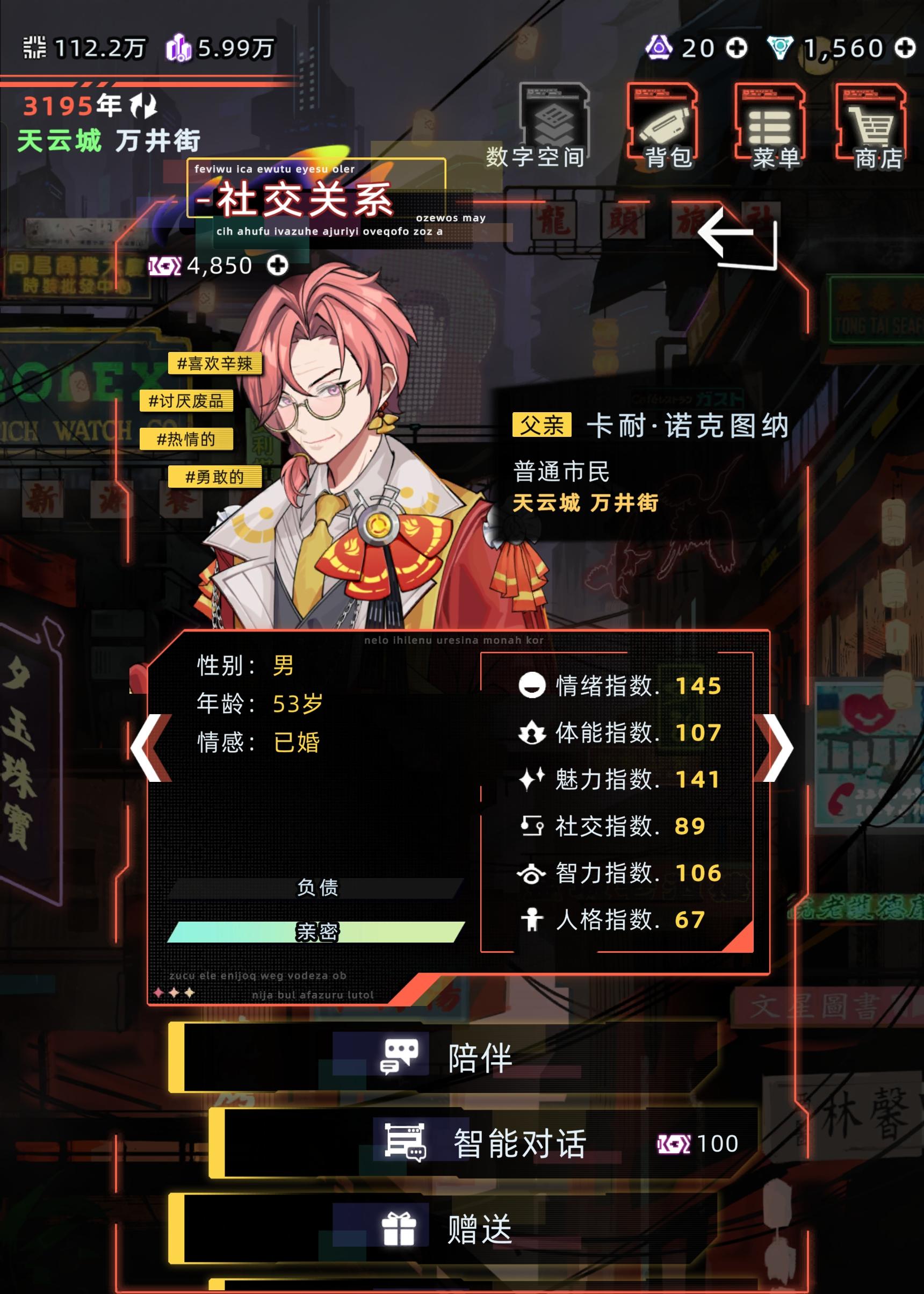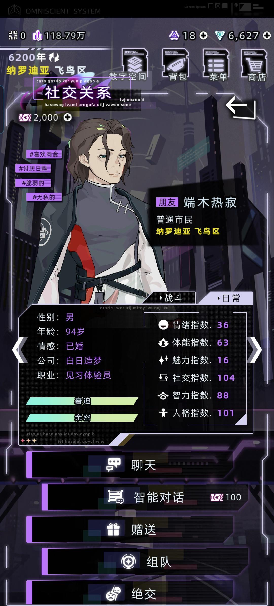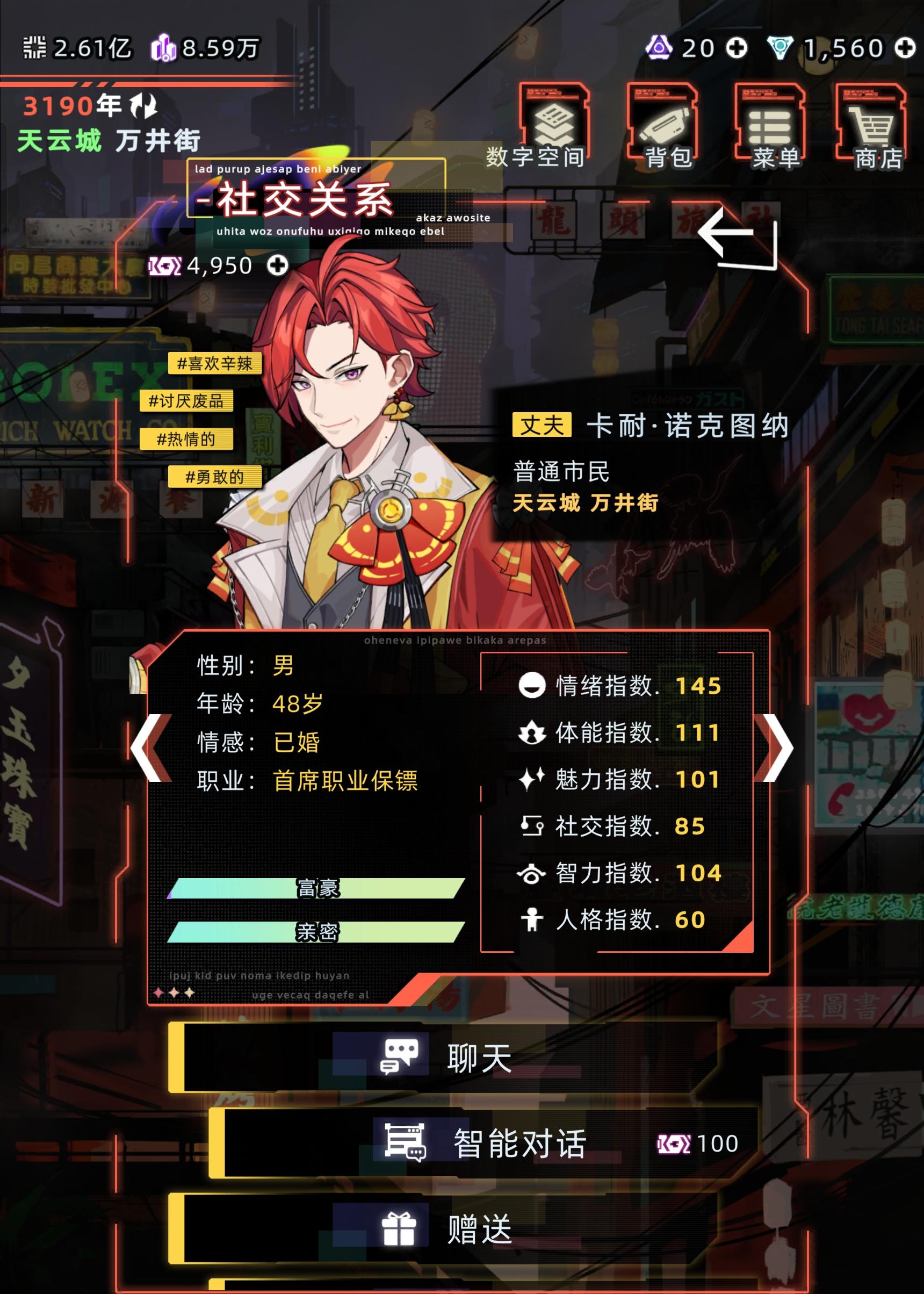 没错!!又是本小菜小菜前几天不是说做一个超级崽嘛 噔噔噔!!登场了 性格方面也显示如图中这样 如果不喜欢就可以不用耗对话券了然后就是口中的弥赛亚 本来是想设定爱人是他的弥赛亚 结果反着来了但是感觉更带感了就没改没错 本小菜就是因为这个(才不是懒得改) 然后呢如果有大佬看见了并且加入了的话也可以给几个返图(这个看见不对了我是真得改#未来人生 )