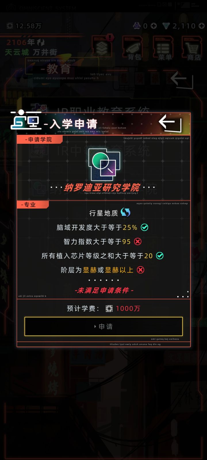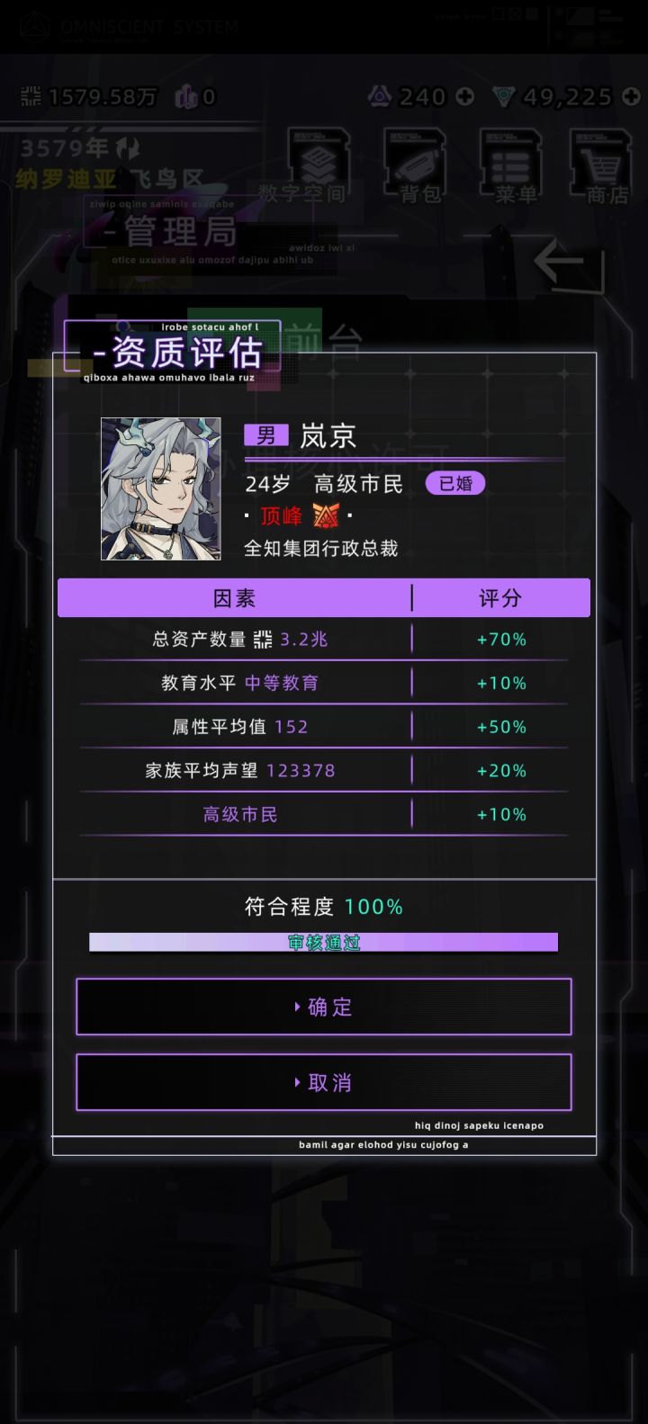 一.纳罗迪亚许可证许可证分为临时许可、教育许可、核心许可。想要申请核心许可,要先有临时许可上纳罗迪亚,然后前往飞鸟区管理局进行申请。临时许可:非高级市民100w/年,高级市民免费。核心许可:需要100%资质评估通过+1亿信用点。属性大概125+即可达到上限50%财产每1千万资产(不包括公司资金)1%,上限70%中等教育10%,高等20%家族声望1000=1%,上限20%高级市民额