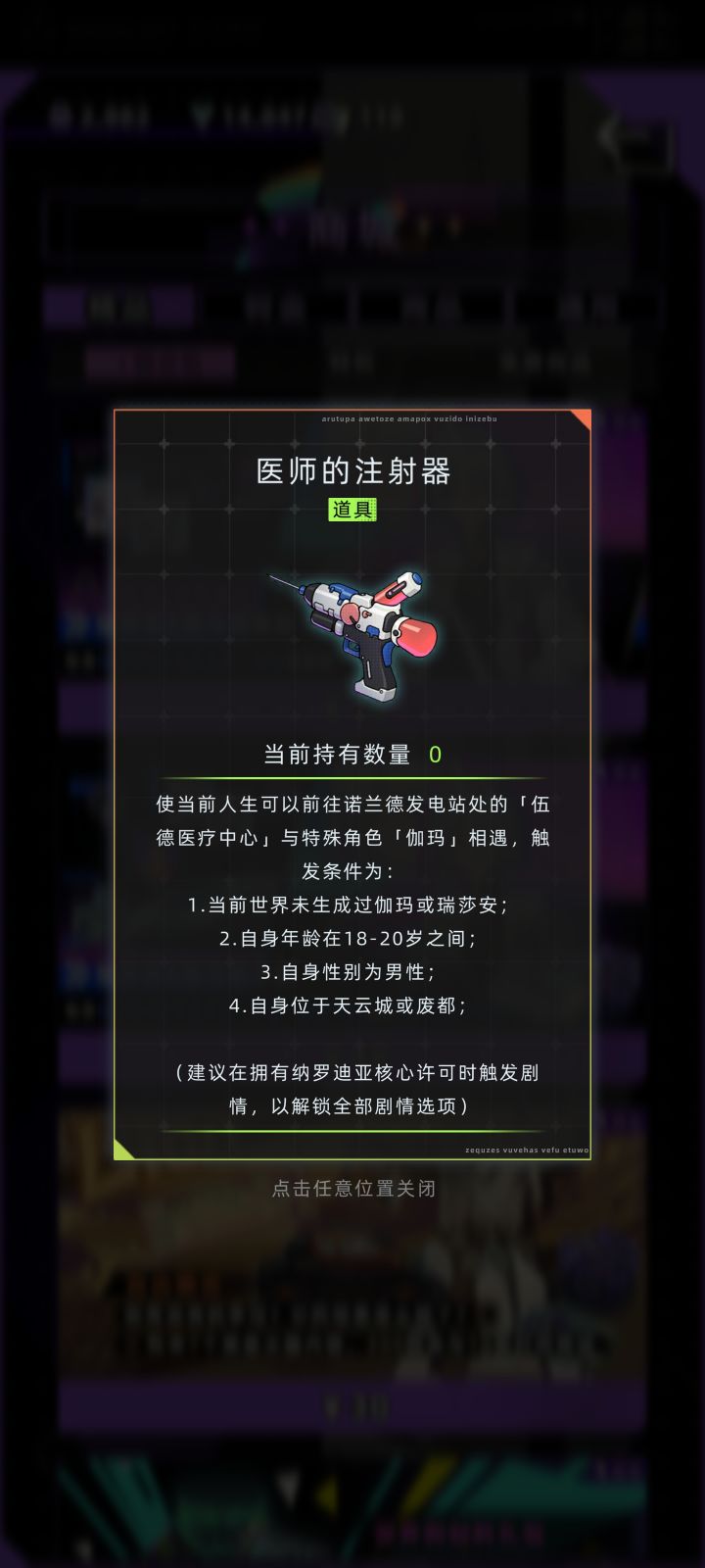 新增特殊角色:卡耐·诺克图耐(可攻略) 、瑞莎安(可攻略)、伽马(可攻略) 1.卡耐·诺克图耐 触发条件(条件暂未完全明确,道具出后补上): ①未触发过该角色及其他角色 ②需角色性别为女 ③角色处于19-25岁时前往高空公路比赛夺冠后触发 ,比赛后同一年内再次前往车手聚集地触发后续(一定要在当年去,也一定要两次比赛都夺冠,不然后续就没有了!!!) ④处于天云城或废都(处于下城区) 注
