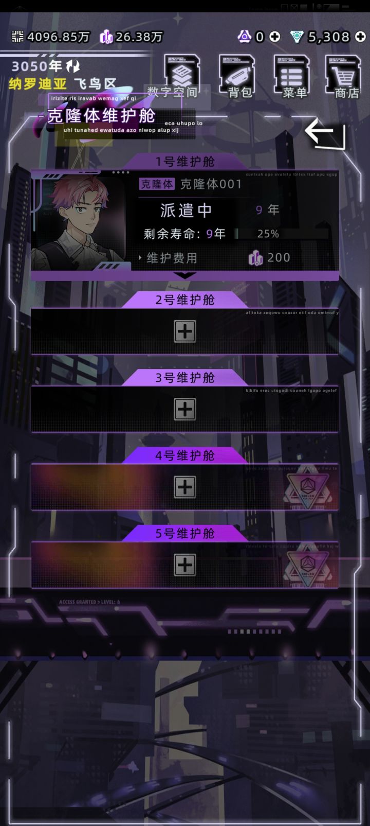 克隆,这本身就是一个开发性极大的玩法 ,比如说,通过维护克隆体可以 存在个几百年,我们也可以让他们去下城区帮忙赚信用点