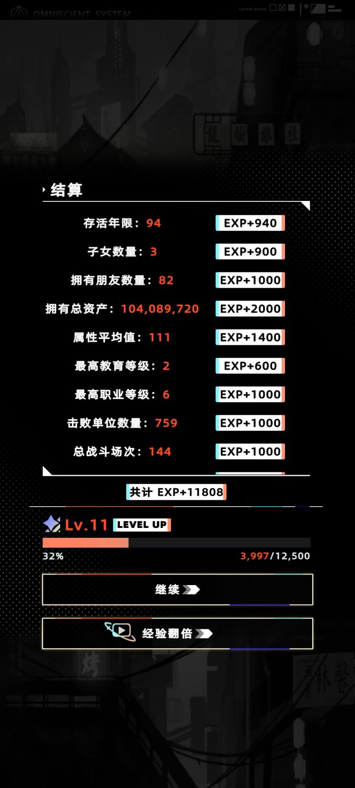 点了翻倍后经验还能被吞啊???双倍十二级了一看菜单还是十一级。#未来人生修改建议