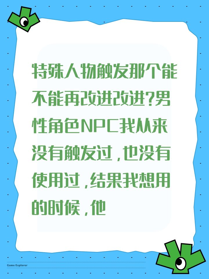 特殊人物触发那个能不能再改进改进?男性角色NPC我从来没有触发过,也没有使用过,结果我想用的时候,他说我使用过了什么鬼?