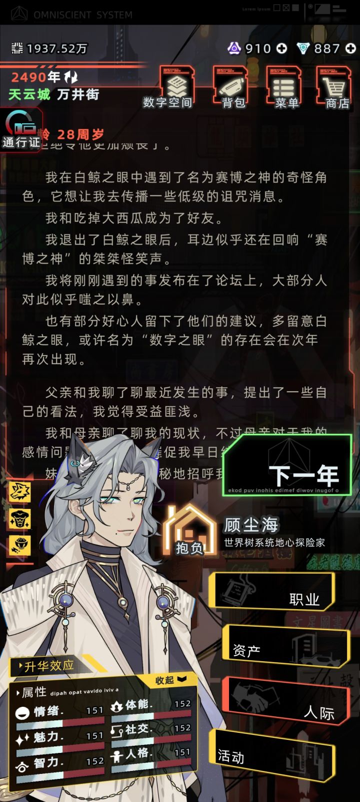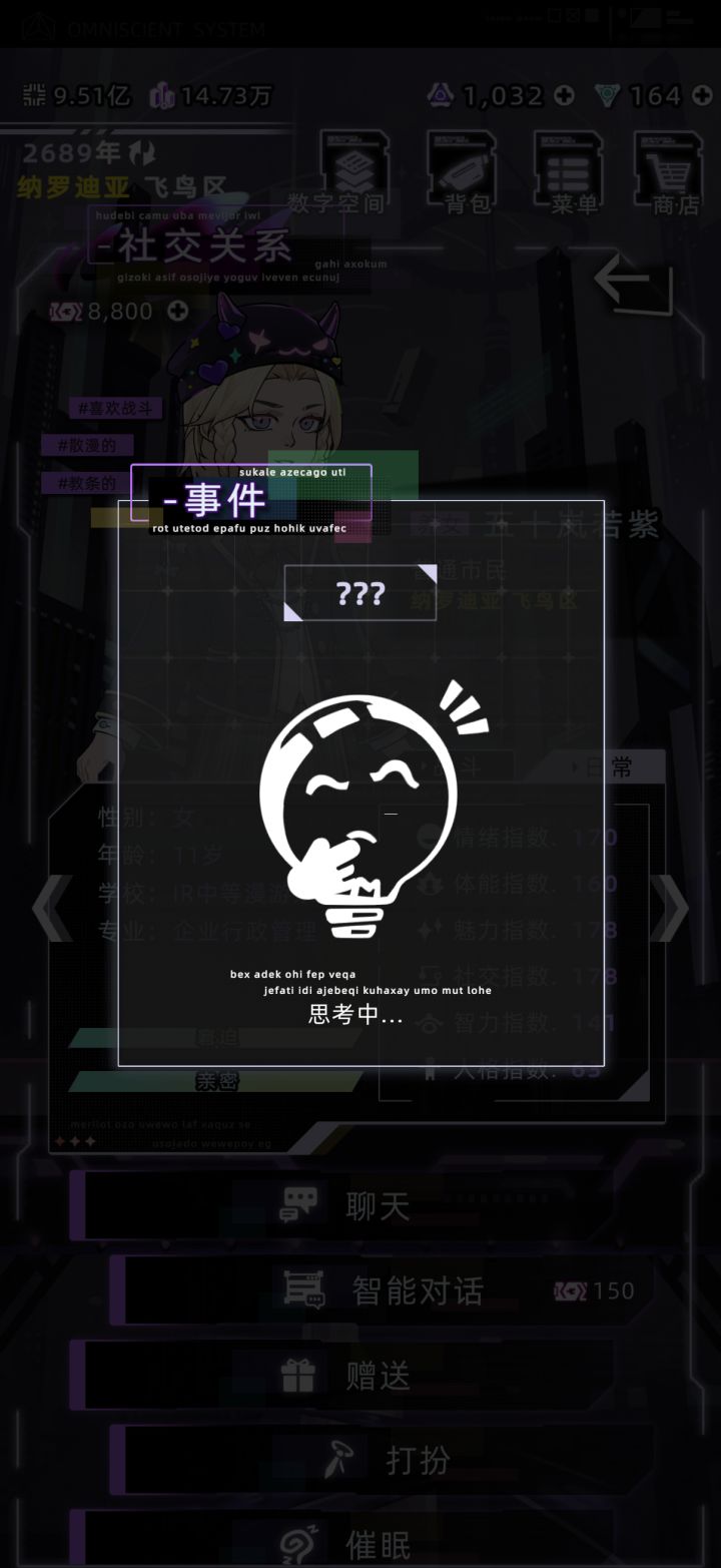 卢娜彻底落魄,一点信用点……我生活费一直都是温饱都没动过,难绷。还有这些普通npc的互动……并且触发概率低的可怜,玩到现在也才第4次碰到。文照阑都十几次了。wj不给赫恩,卢娜,小文这些角色像涂山那样给个触发器,都快被遗忘了