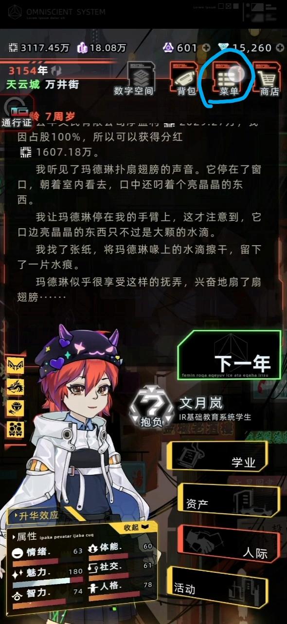 图片是录屏截图,游戏里只有下一年点了有反应,其他都点不开,包括商店、菜单都不行。#未来人生 #未来人生反馈 #未来人生问题反馈