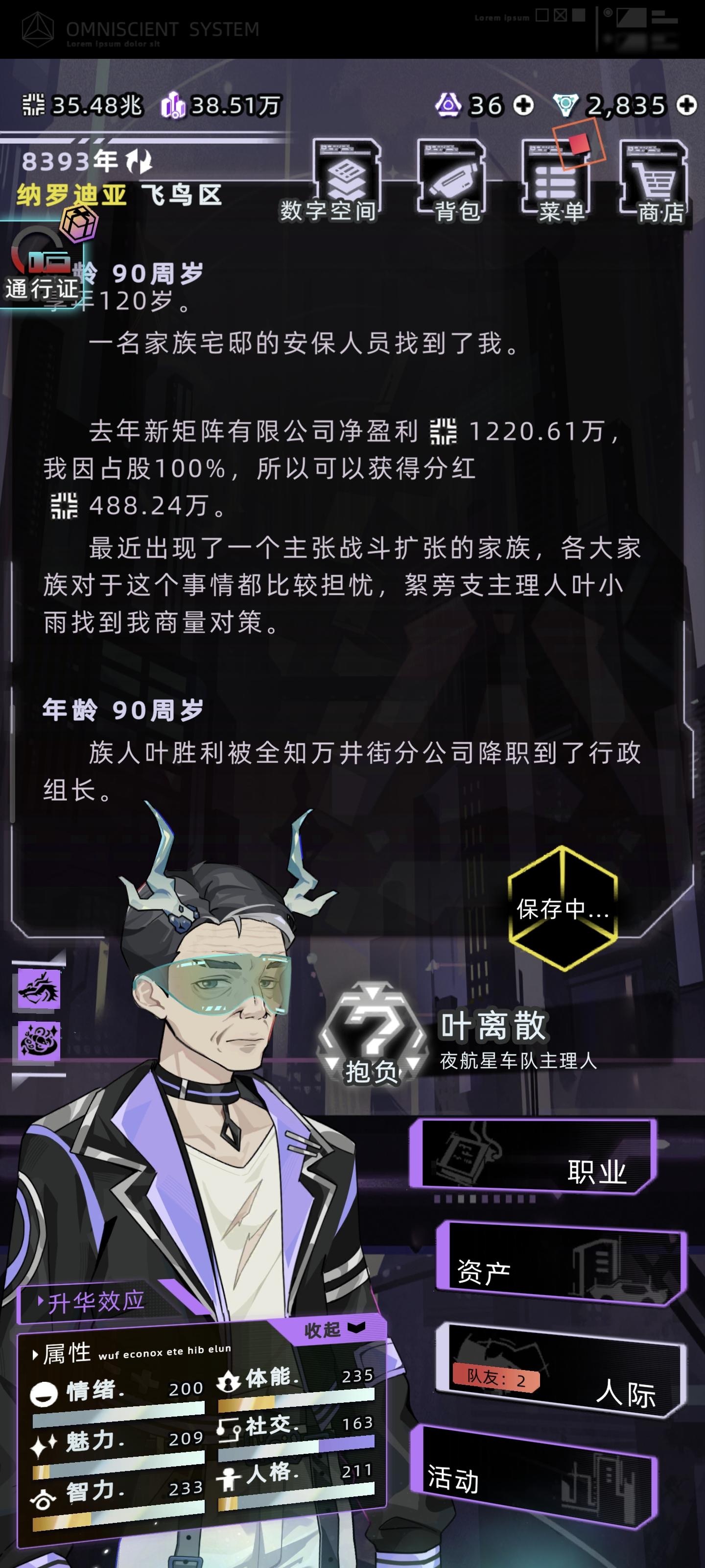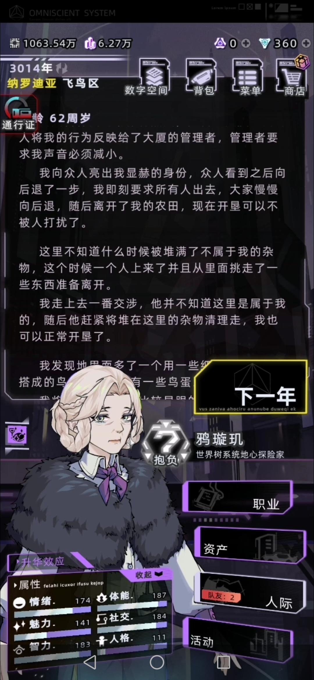 更新完上号一看,除了下一年啥都点不了,手机重启了都没用,点下一年的话,下一年职业 资产 人际 活动 这4个可以点,但商城那一栏的全都点了没反应