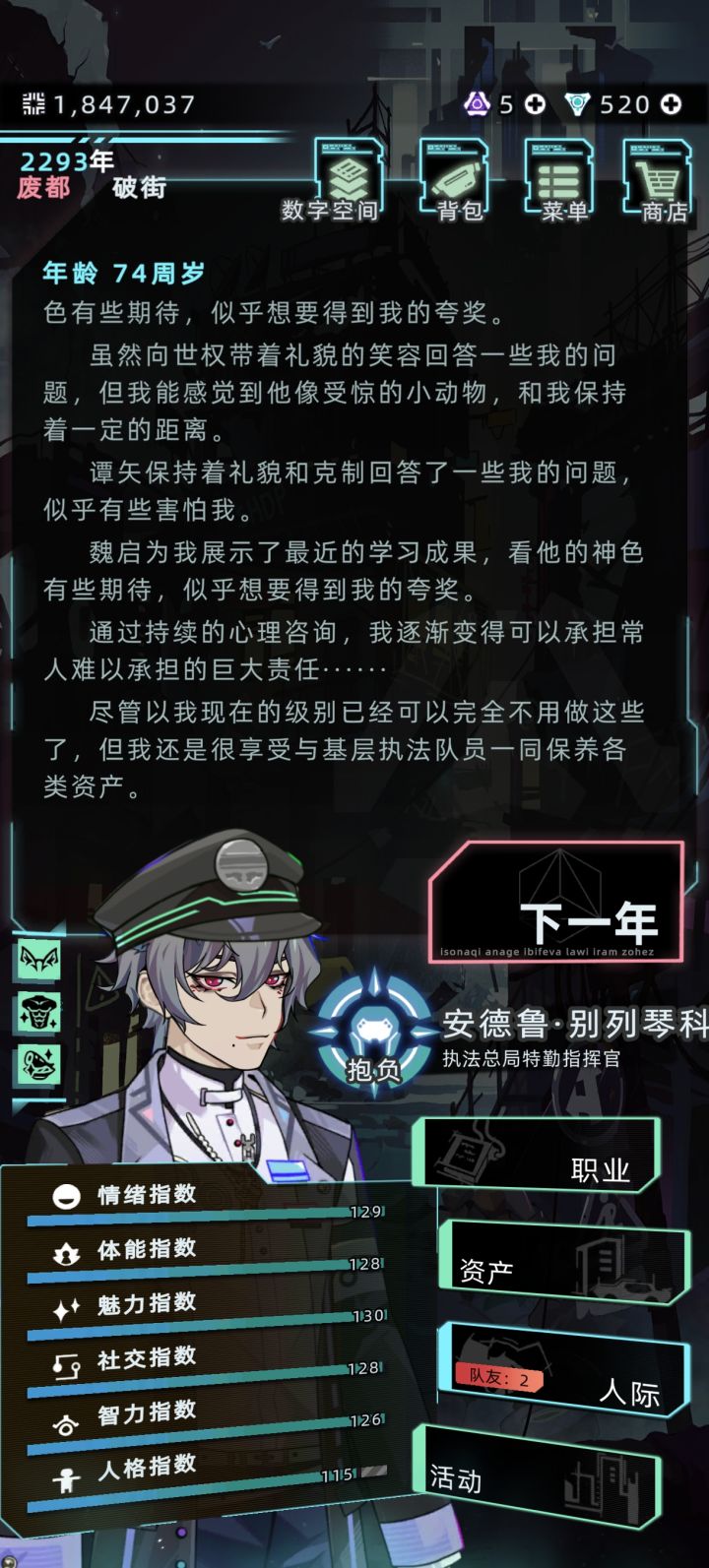 建议高级教育加入设计或者制造芯片的学业毕竟芯片人人都用,但是却没有制造他的人。建议加入医生,律师这样的职业天天看见医生却不能成为医生。监狱系统都有了,怎么能没有律师呢。希望实装黑客,电子宠物设计师,服装设计师,npc能当,为啥玩家不能当明星职业可以出个童星的天赋父母从小记录主控生活并发布,完成一定的任务,长大可以直接成为明星或者主播这样的剧情。或者