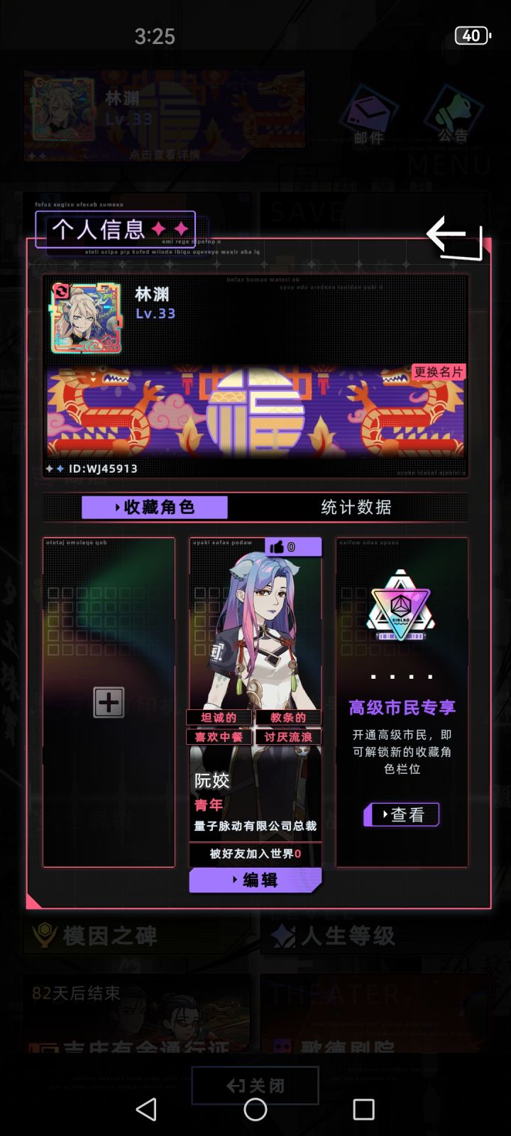 为什么买了高级市民却没有解锁额外的角色栏位啊……游戏里反馈也没回信,每次更新高级市民权限重新领取也没有角色栏位解锁的补偿……感觉被官方抛弃了