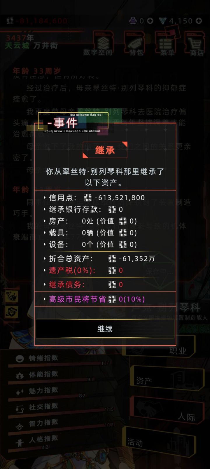 #未来人生家族 #未来人生公司玩法 本来是很正常的进入疗养院继承玩了十几年,上一档的去世直接给我这一档留下6亿债务,我玩了22代才攒到5亿#浅评一下 这六亿债务直接把我玩了很久的存档干报废了,付出心血的五级公司和家族也随着这个存档烟消云散了万物打印机的房子也直接给拍卖掉了……本来之前觉得特别好充了高级市民支持万匠,这下直接让我失望透顶了