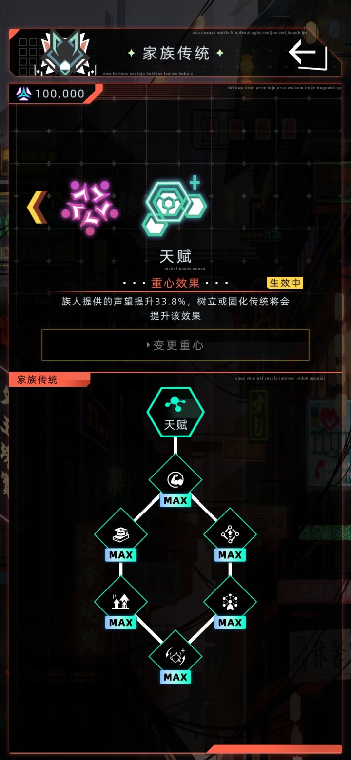 如图启动天赋重心,结果max传统都没起到作用,孩子们的属性面板也都是100,换了亲情和财富的重心,才有天赋重心的效果是怎么回事…bug吗