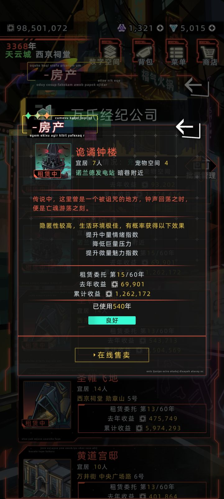 如图,之前的房屋都可以在线售卖,图二这个新出的圣帷飞地没有售卖选项呢。请问是bug还是房屋的特别属性呢?