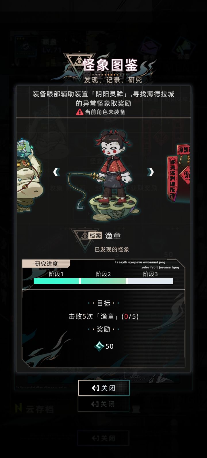 如图,奖励领完了,但怪象图鉴的收集任务还没做完,但是已经触发不了怪象(玩了好几个档了)可能是因为我每次碰到渔童都选择了挣脱吧(心虚)#未来人生