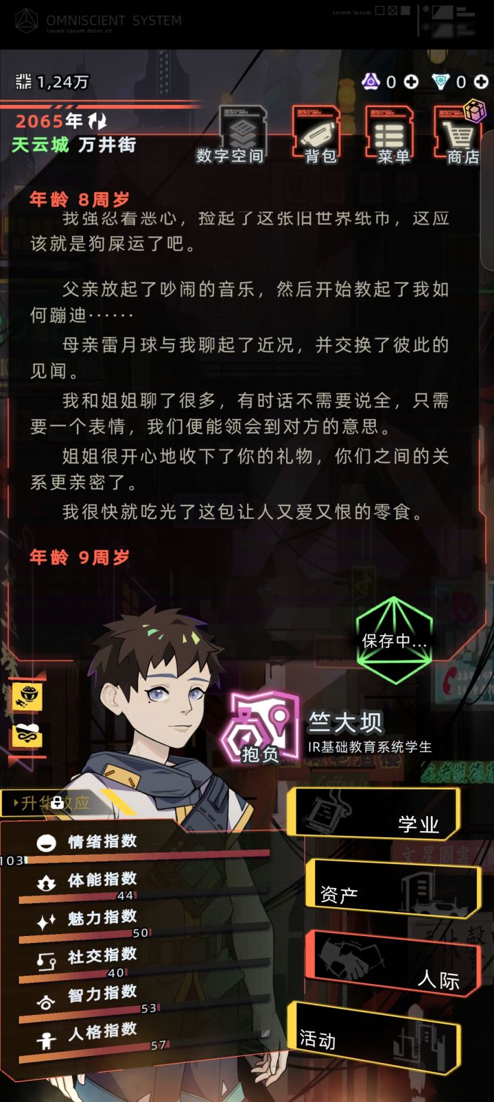 更新完上号一看,除了下一年啥都点不了,手机重启了都没用,点下一年的话,下一年职业 资产 人际 活动 这4个可以点,但商城那一栏的全都点了没反应
