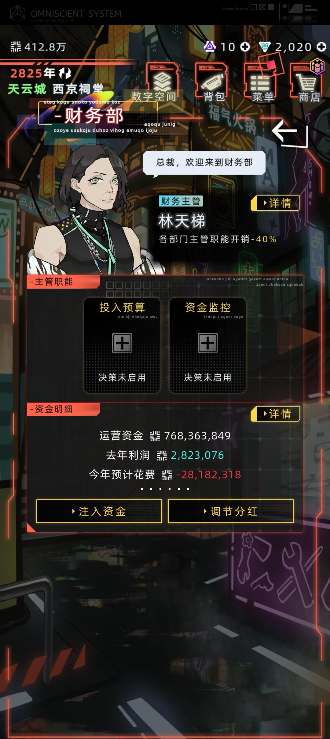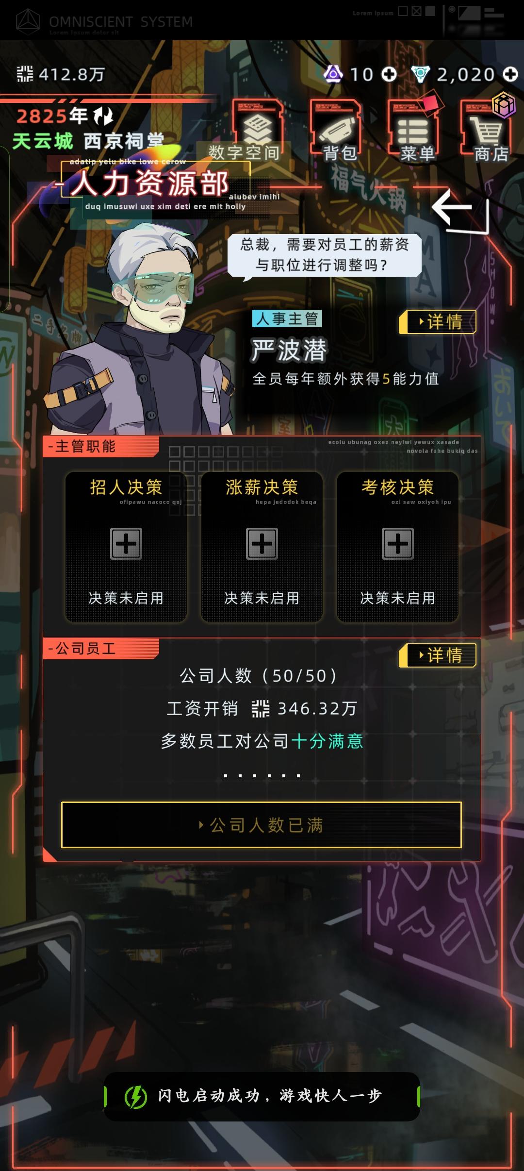 退游一阵子,我重新开了个档,按之前的档开的公司。现在的公司配置和之前档我记得是完全一样的但之前的档我丢给代理人一年一般都能赚3000万,这个只有开发布会才能赚3000万,往后越来越少,接近下一周期还得亏钱。这是为什么啊,我现在都不敢请代理人一直在搞公司就是搞不上来没执行福利,财务部人力资源部所有选项都没有设置,招人都是手动招的大佬们能不能看看是哪里出了问题?然后我这个