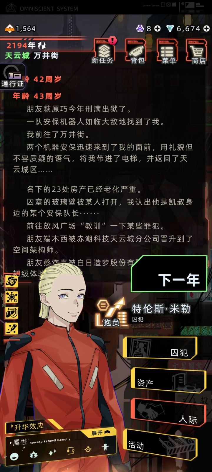 如题,触发幻影危机,在坐牢呢,坐牢的时候信用许可掉到零了,被机器人从监狱拉到万井街了。纳罗迪亚的机器人才是爷