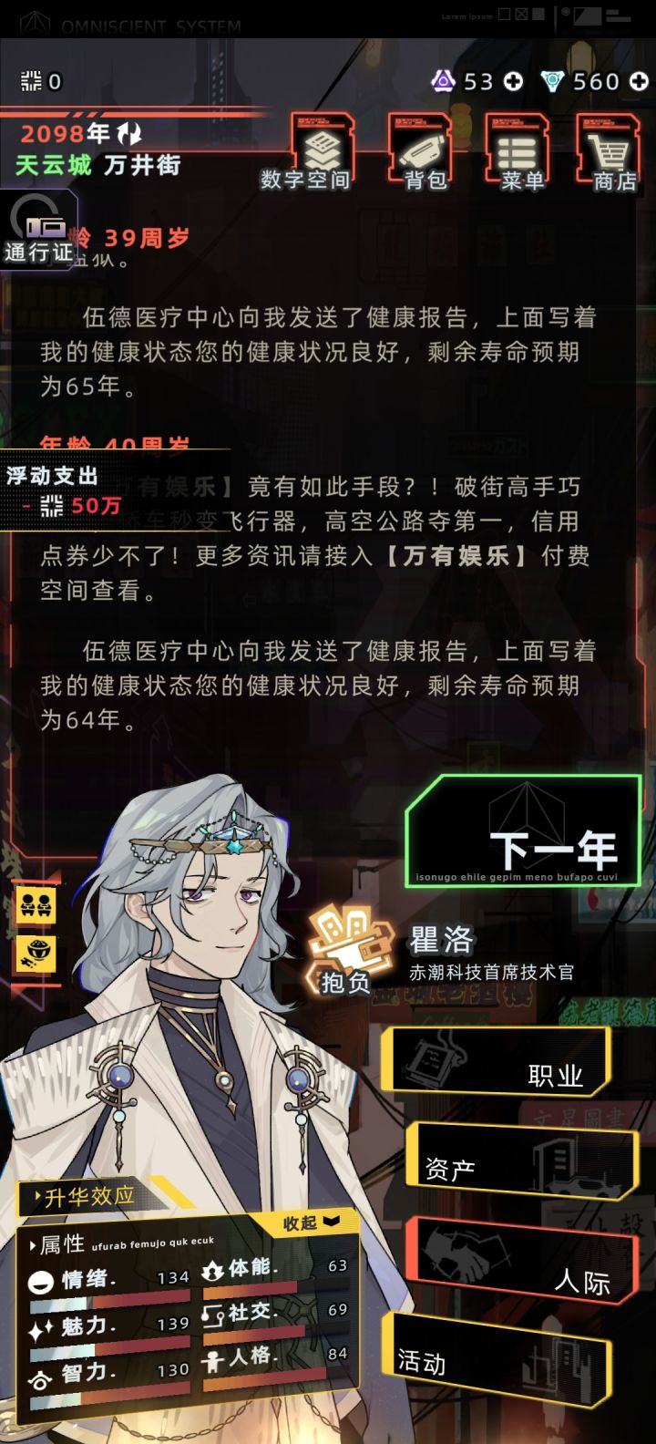 如图 我甚至开了两个档了 这个档玩的时间也很久了 不知道为什么就是没有显示 人物也已经成年了 #未来人生反馈