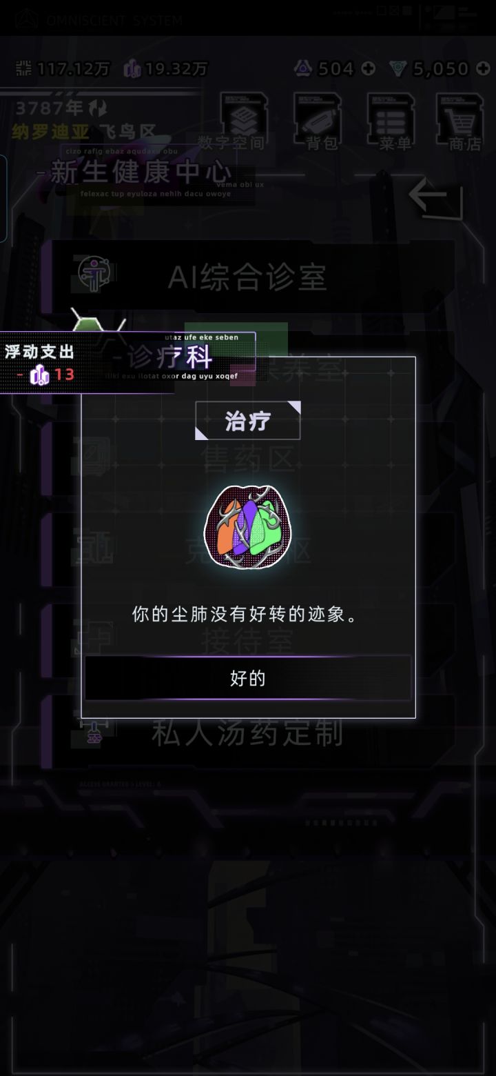 真是蚌埠住了,上层区高级医院居然搞不定一个尘肺,所以罗纳迪亚上等人是一得病就花大价钱去克隆换器官吗?都是罗纳迪亚人了医院也升级一下吧,应该啥病都能治才正常啊。只能说这医院好哇,专坑人傻钱多的上等人。可惜了我的XP是小钱钱,我宁愿去万井街花信用点找中医,管用又便宜