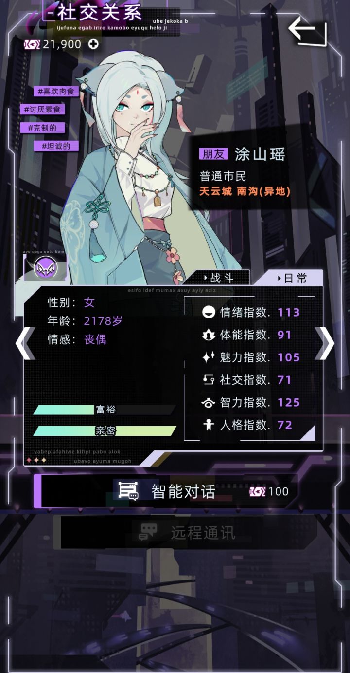 带了丘比特,家族牵线拉满,对方魅力110+,结果这么搞???110+的相亲0进度,电脑自己找,7、80的当个宝???新版本怎么这么多膈应人的啊!!!只知道消耗玩家信用点却不能提供游戏性的藏品!(明明是个挺好的图鉴收集项目,结果现在搞成这恶心样儿。)同样是消耗玩家信用点的投资和博物馆!(要赚钱先更多钱,纯纯冤大头行为,也就是信用后期几乎无限,前期看这玩意儿真的是能气笑。)明明不存在通胀问题
