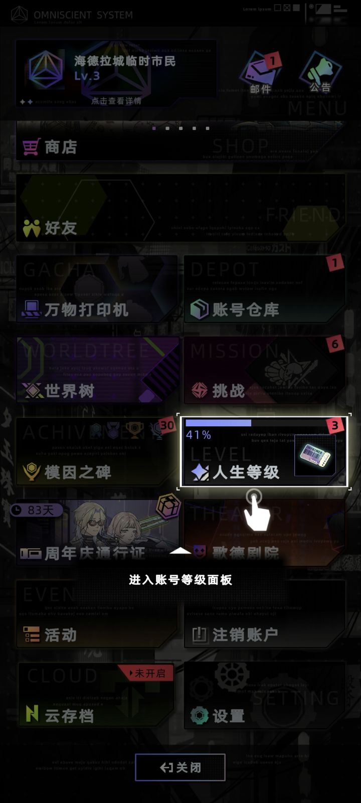 新号第一世结束按新手指导结算,无法点开人生等级,其他功能卡死